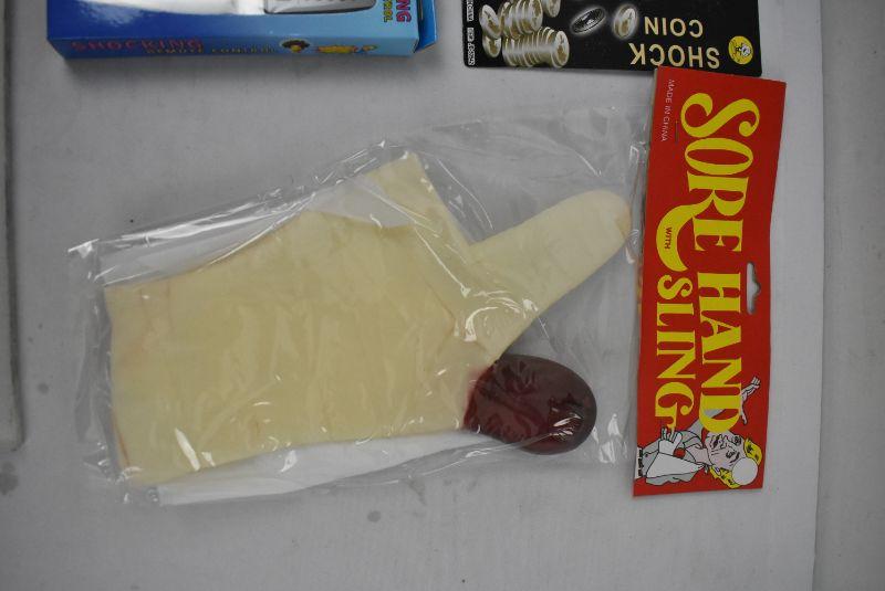 5 Piece Practical Jokes Lot: Sore Hand with Sling, & Various Shocking Toys - New