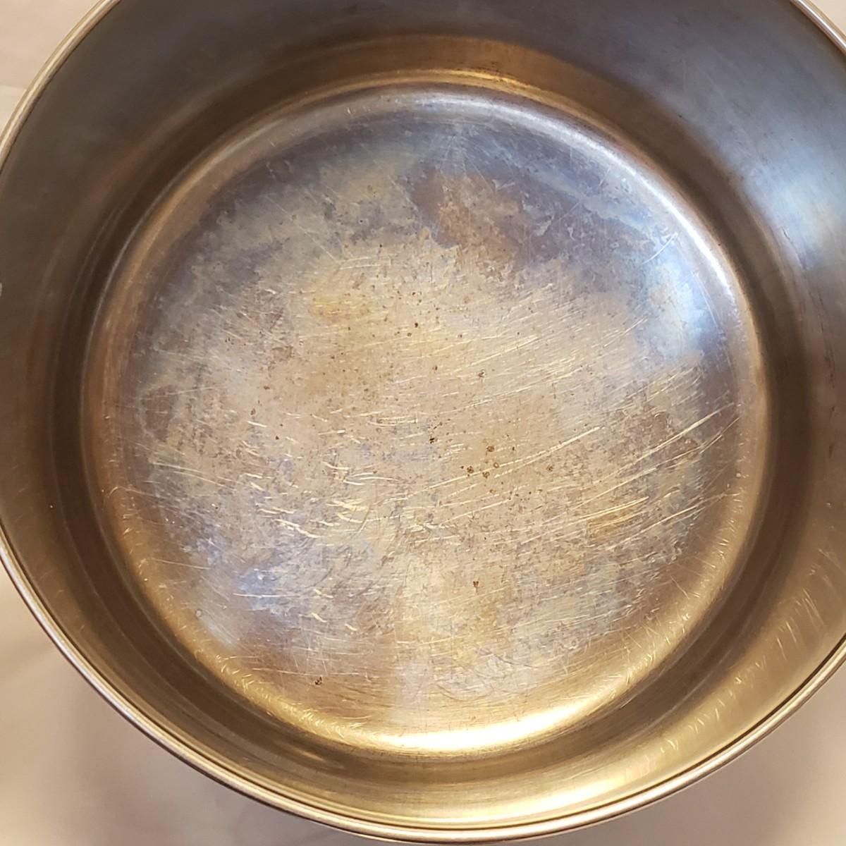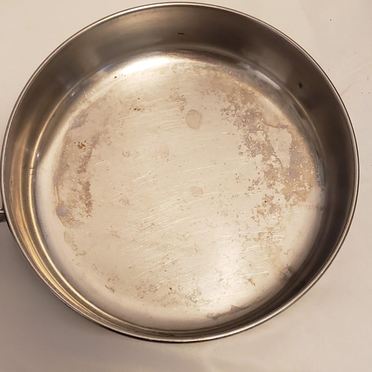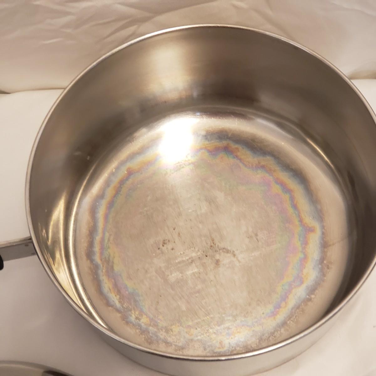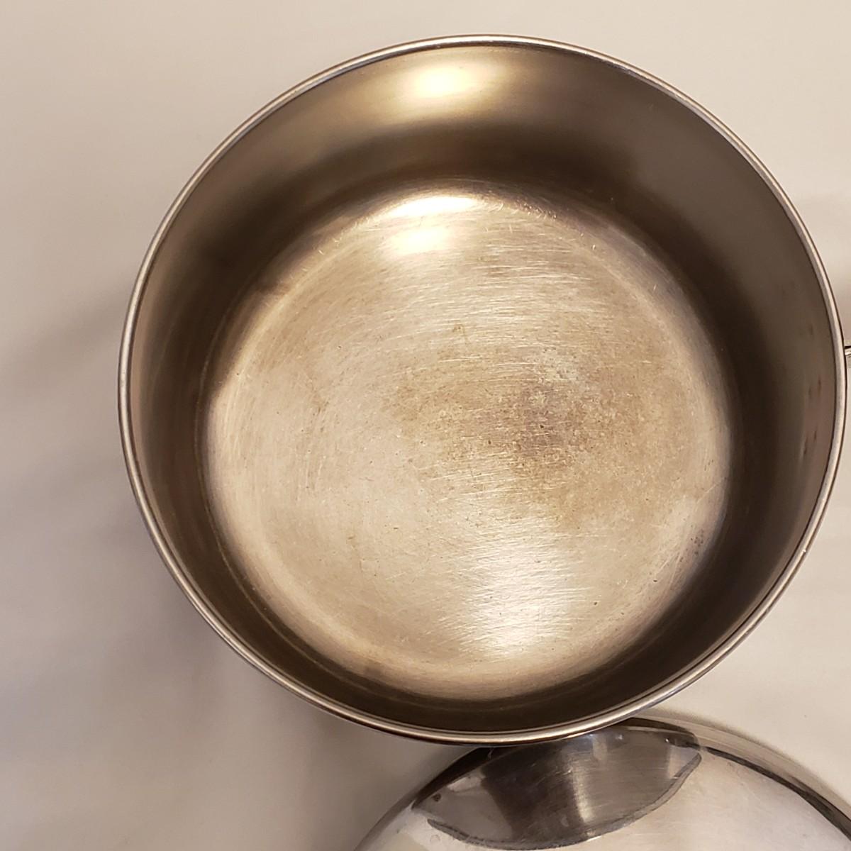 This is a 5 piece Revere Ware stainless steel, copper clad cooking set of pots and pans. The lot contains an 8 quart stock pot with lid, 4 1/2 quart Dutch Oven with lid, a 2 quart sauce pan with lid, a 1 quart sauce pan with lid and a 7 inch skillet.