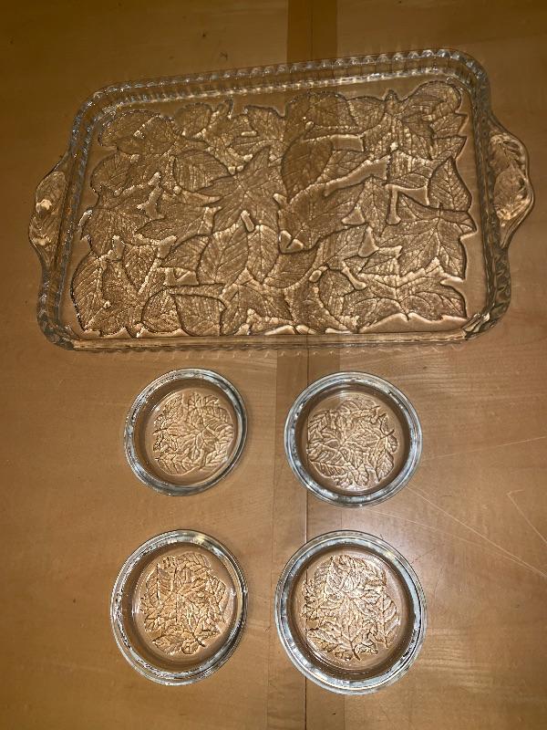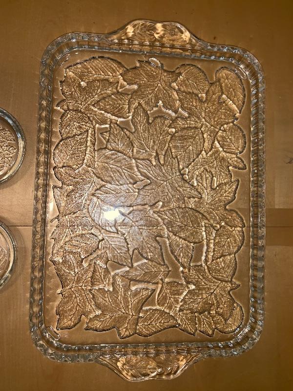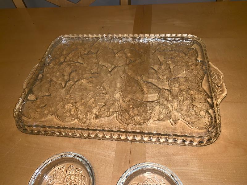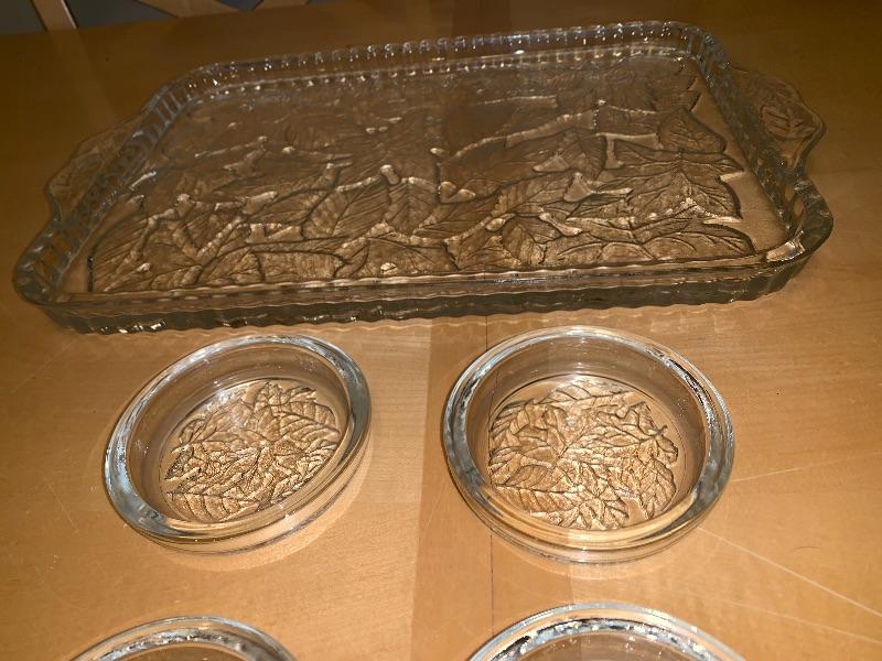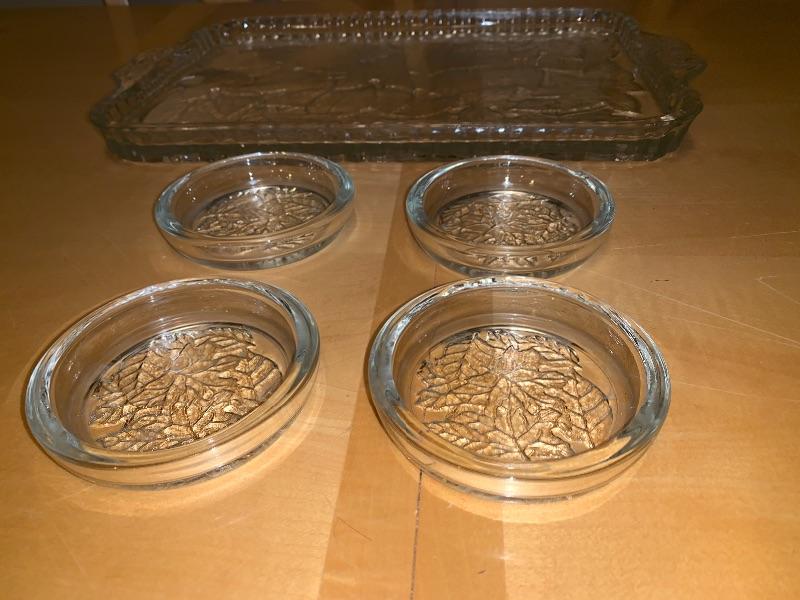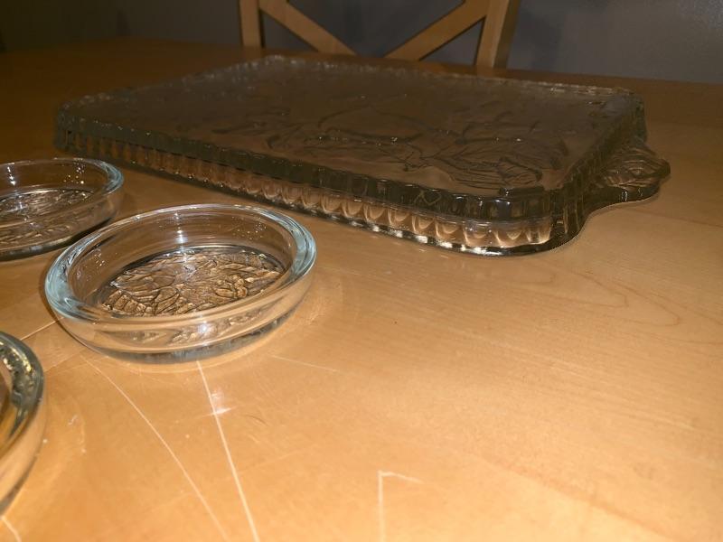 5 Piece Set of Etched Glassware Tray And 4 Dishes