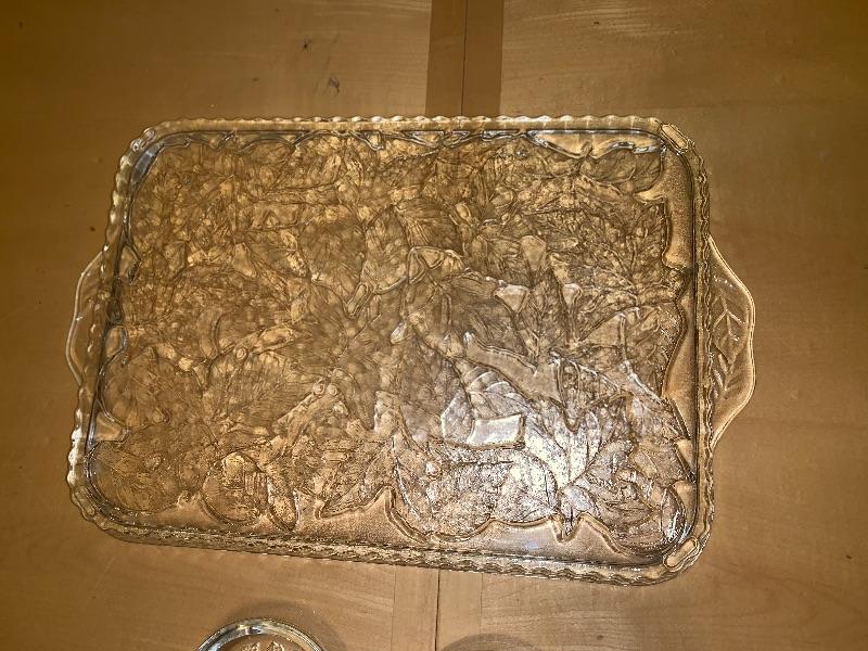 5 Piece Set of Etched Glassware Tray And 4 Dishes