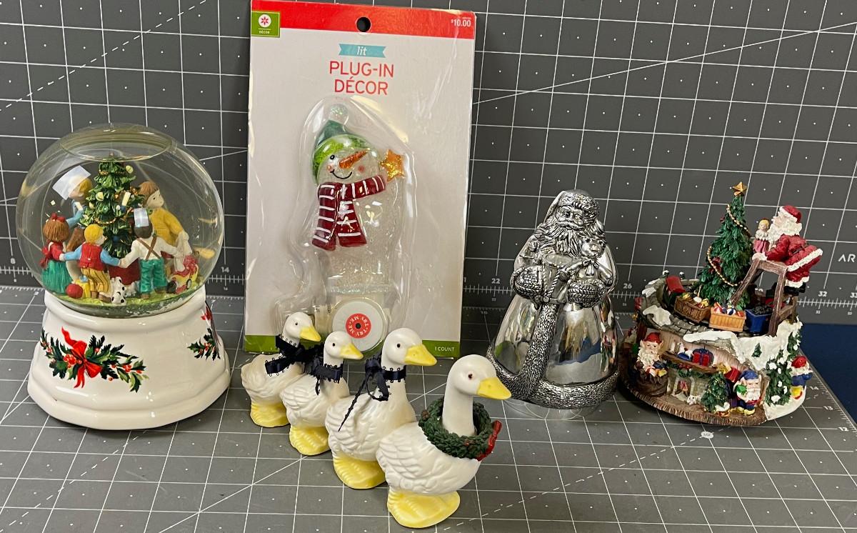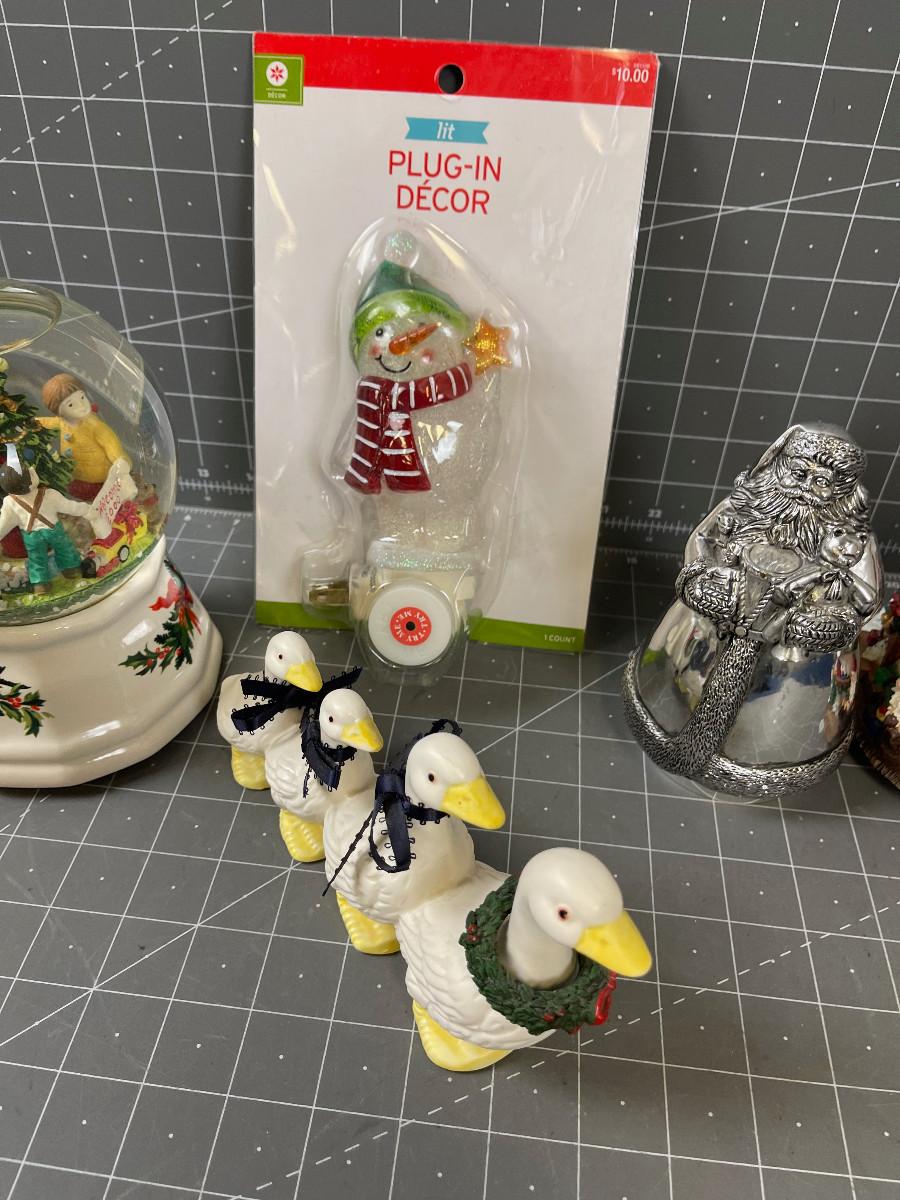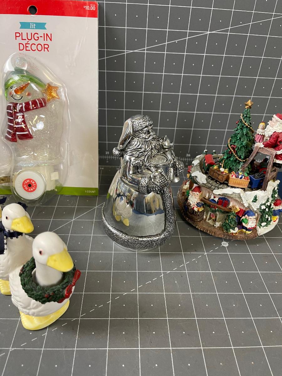 5 Pieces of Christmas Décor:  snow globe, night light, Music Santa