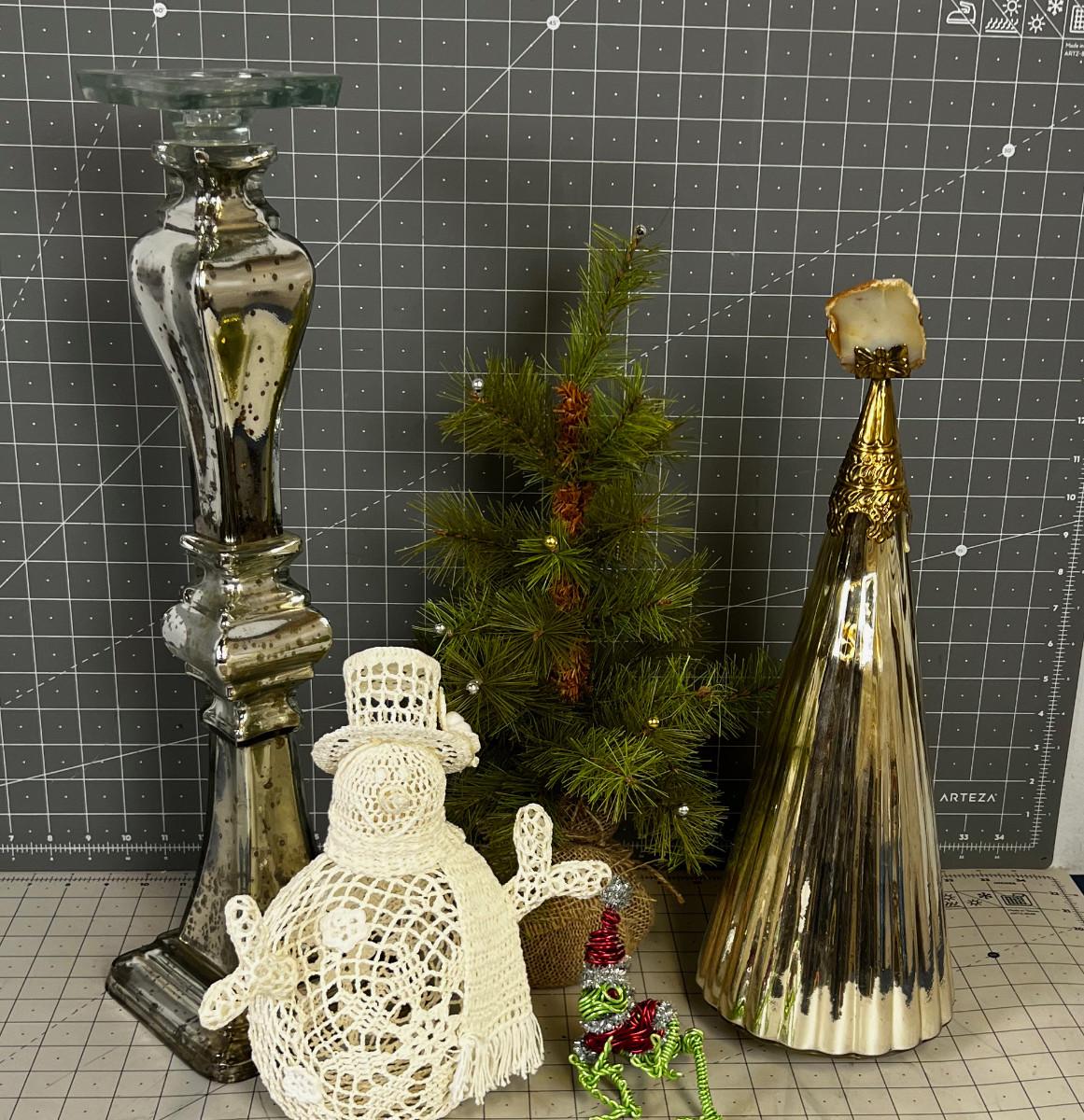 5 Pieces of Holiday Decorations including the wire Frog