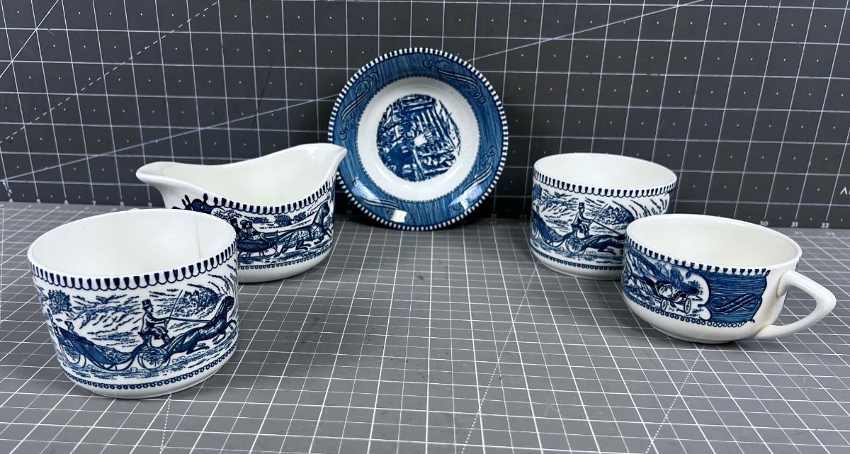 5 Pieces of Vintage Currier & Ives Dinnerware