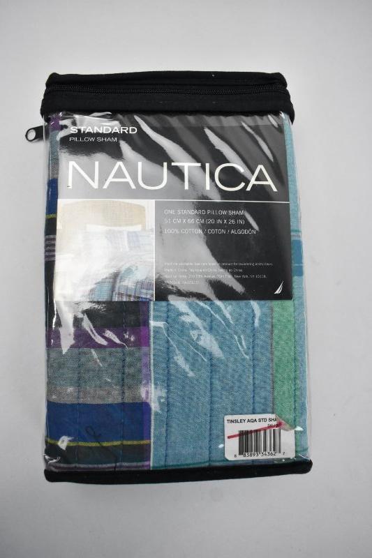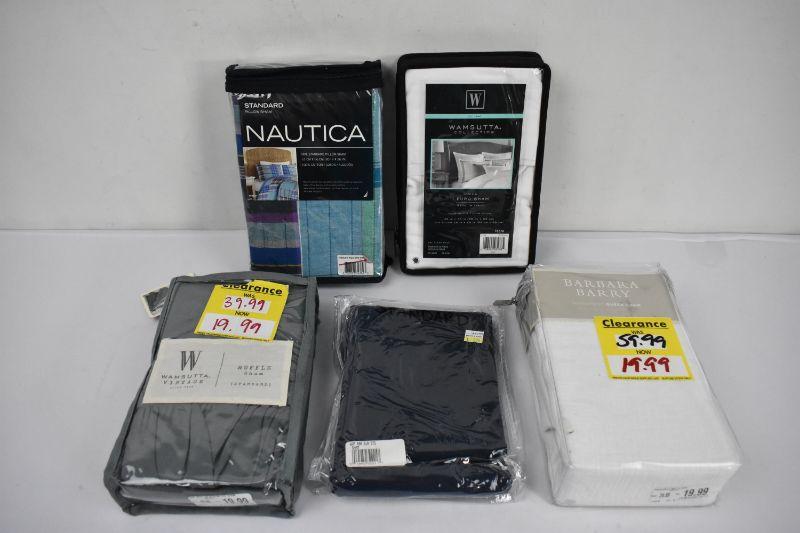 5 Pillow Shams: 2 Euro & 3 Standard: Plaid, White, Green, Blue - New