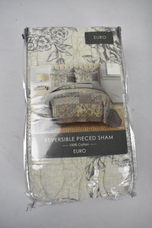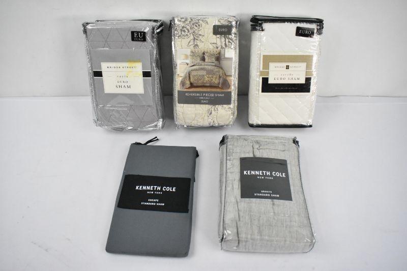 5 Pillow Shams: 3 Euro Size & 2 Standard Size: Tan & Gray - New