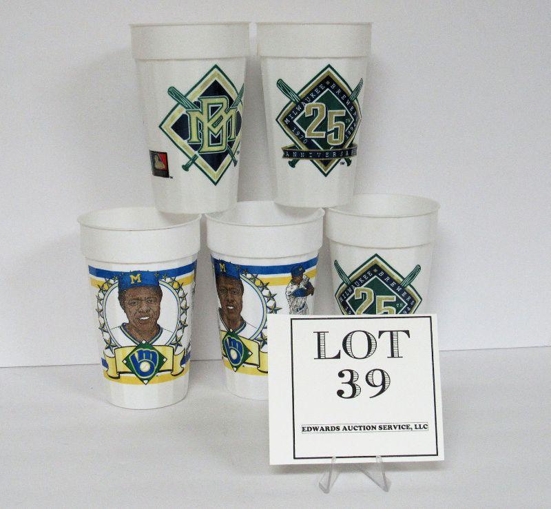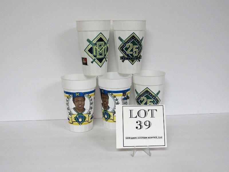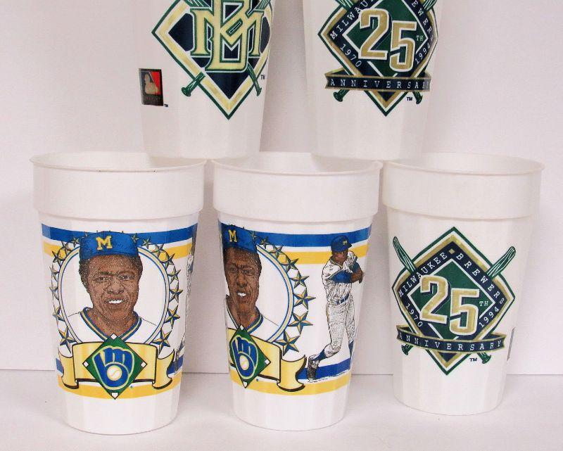 5 Plastic Milwaukee Brewers Cups Hank Aaron and 25th Anniversary