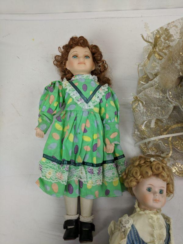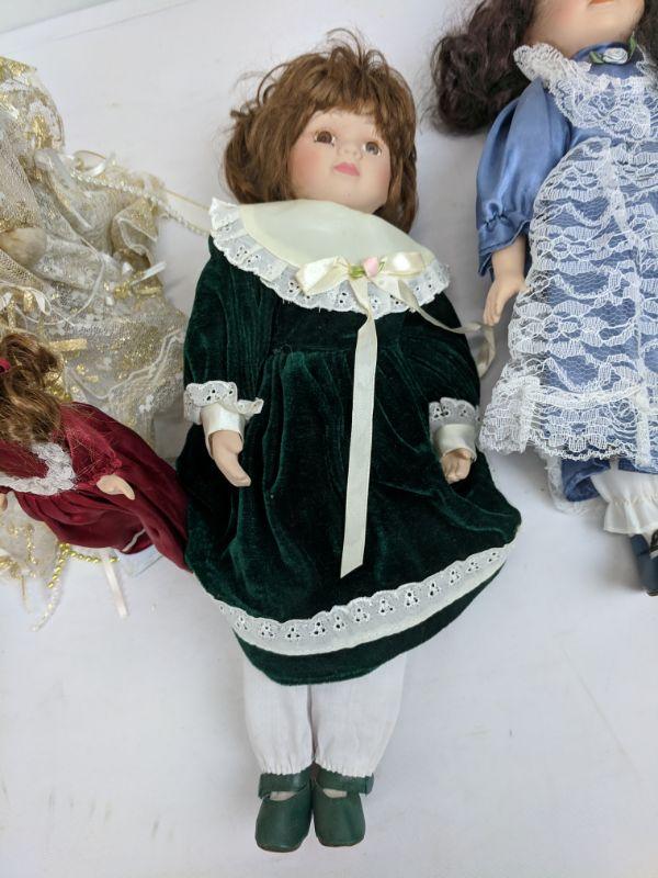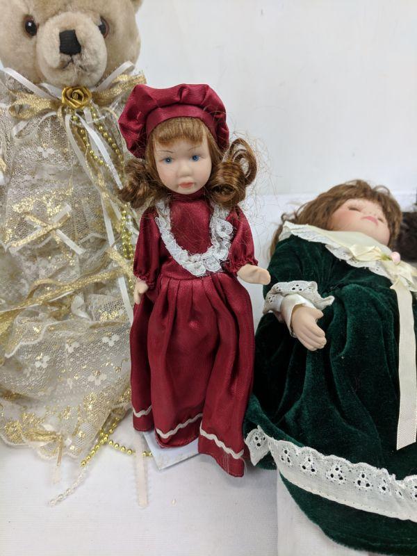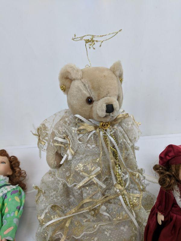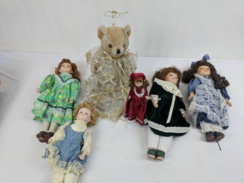 5 Porcelain Dolls & 1 Angel Bear w/Stand
