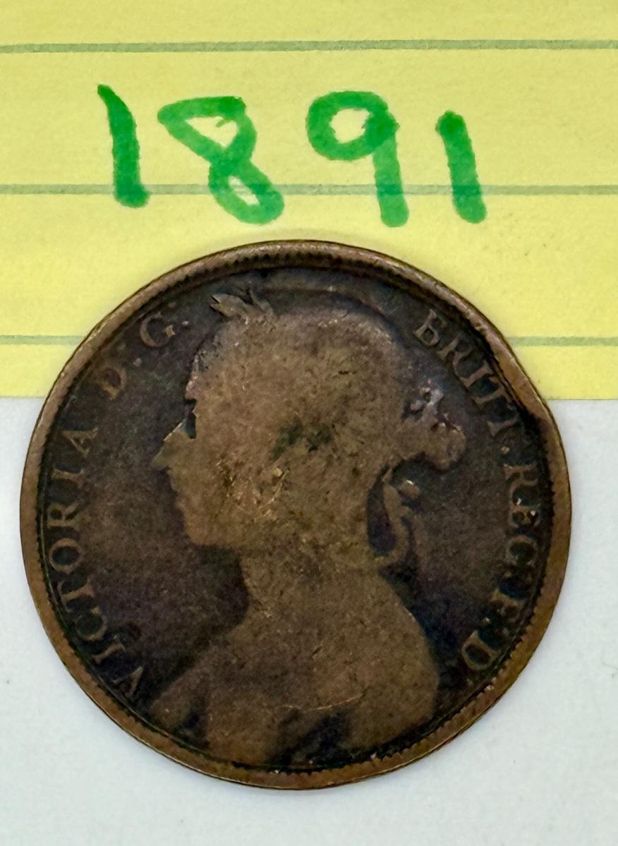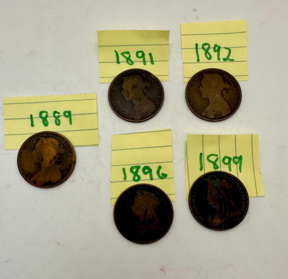 (5) QUEEN VICTORIA British Victorian Pennies 1800's-1900 1889 1891 1892 1896 1899