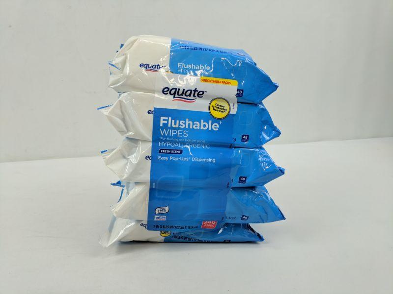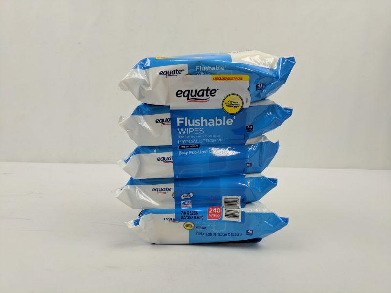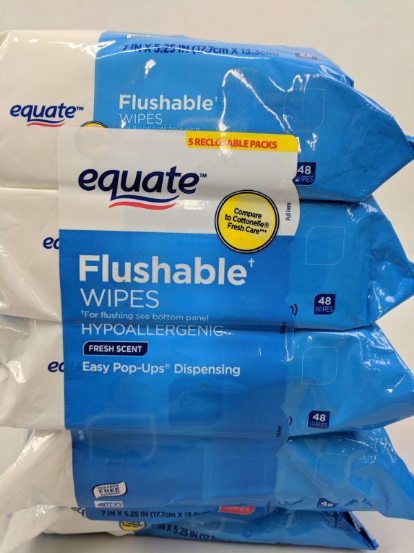 5 Reclosable Packs, Flushable Wipes, Hypoallergenic, Fresh Scent, Equate - New