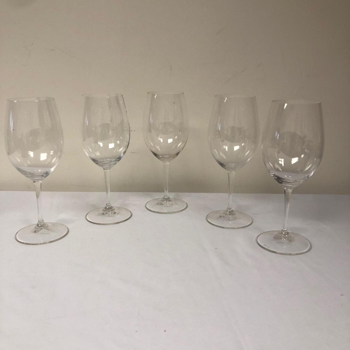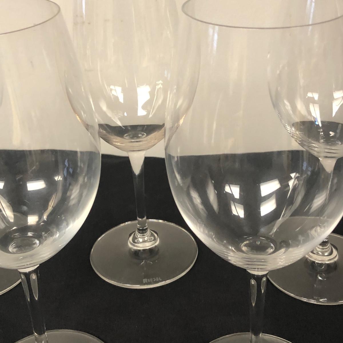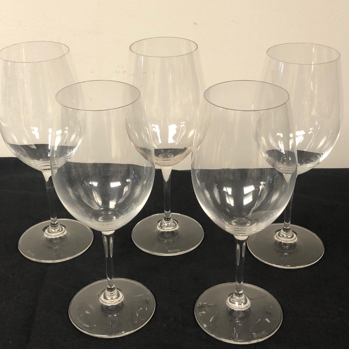 This lot includes five Riedel wine glasses. They stand 9” tall. Shipping Available.