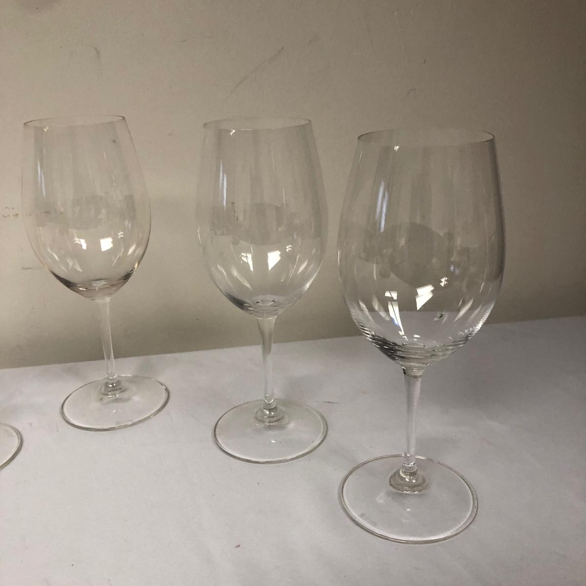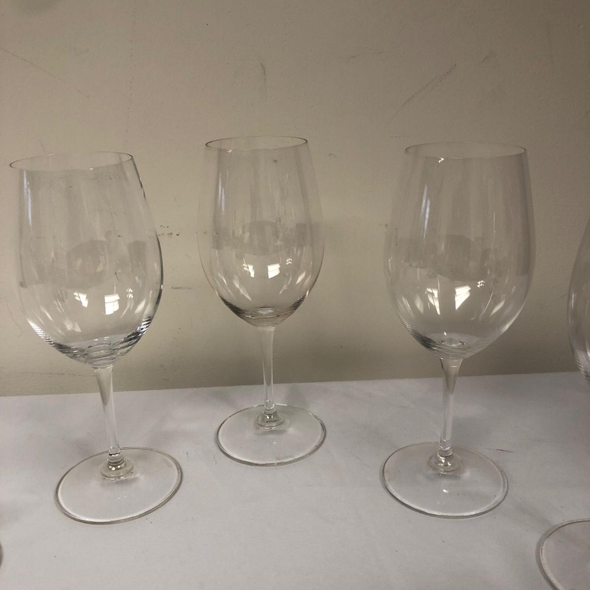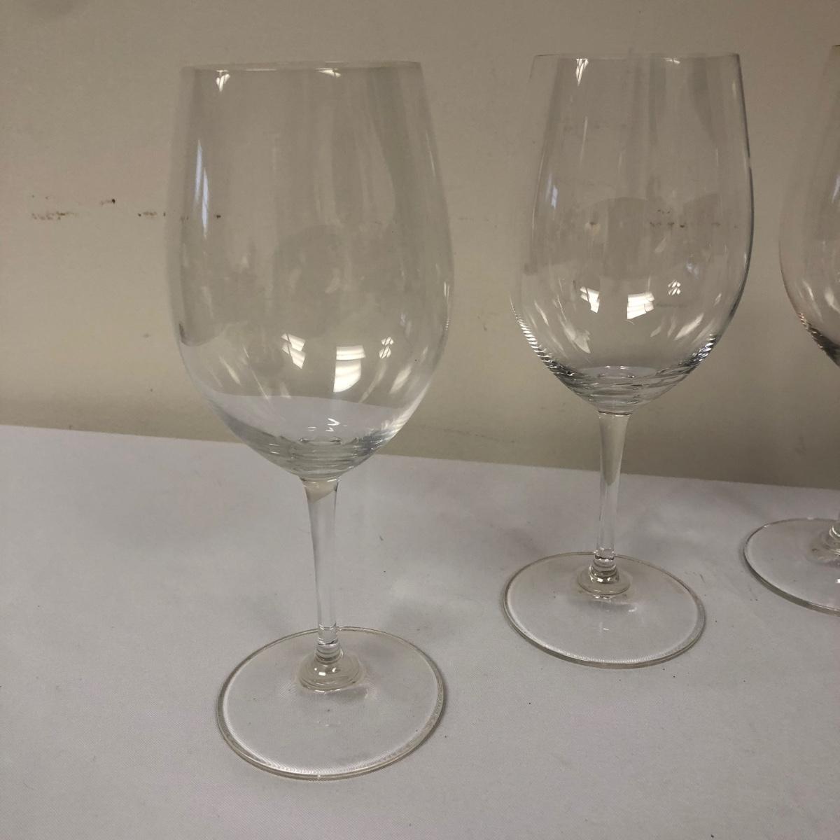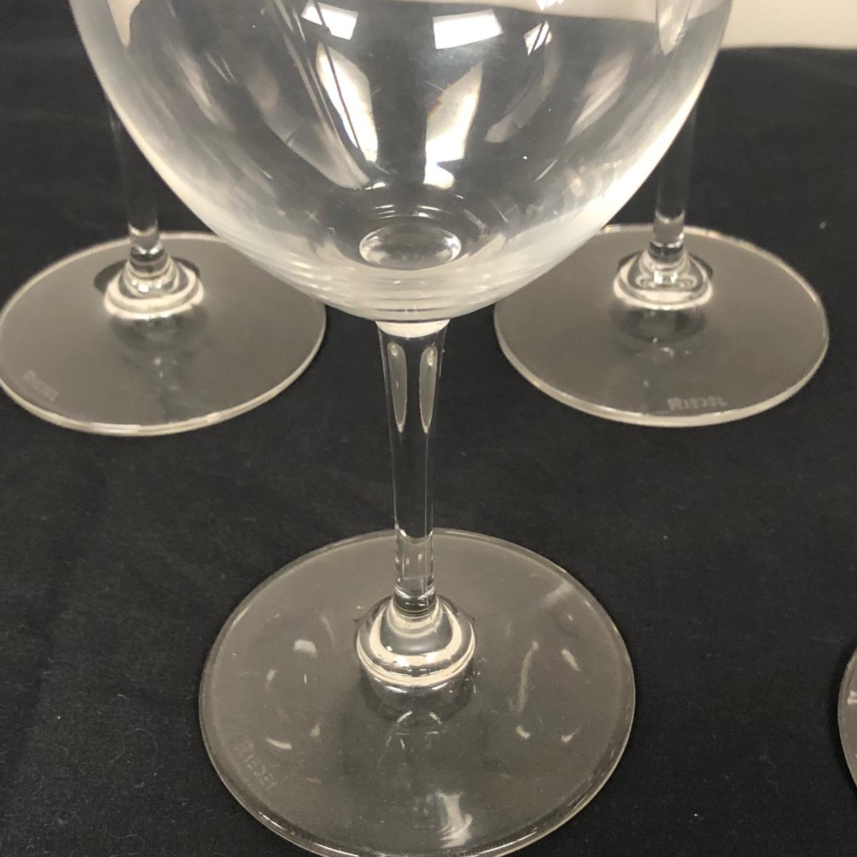 This lot includes five Riedel wine glasses. They stand 9” tall. Shipping Available.