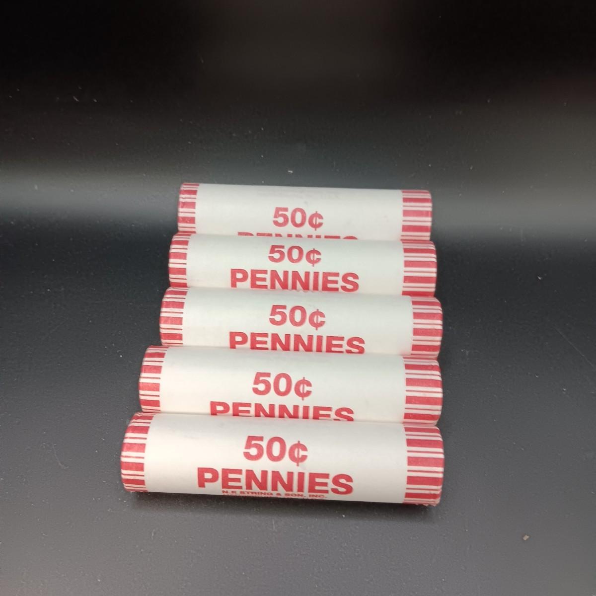 5 ROLL OF UNCIRCULATED 2009-D PENNIES