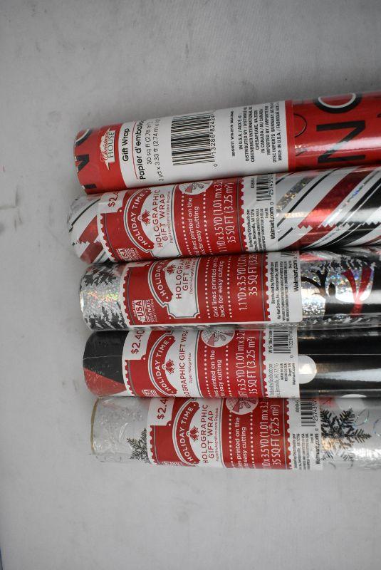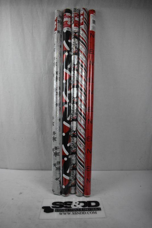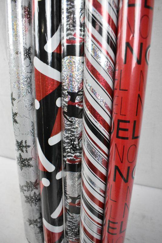 5 Rolls Coordinating Wrapping Paper: B&W/Red/Silver - New
