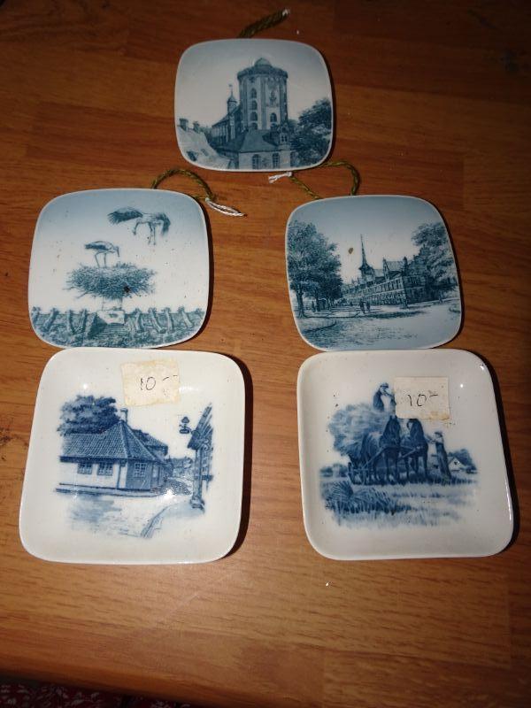 5 Royal Copenhagen Porcelain Blue & White Miniature Wall Plates