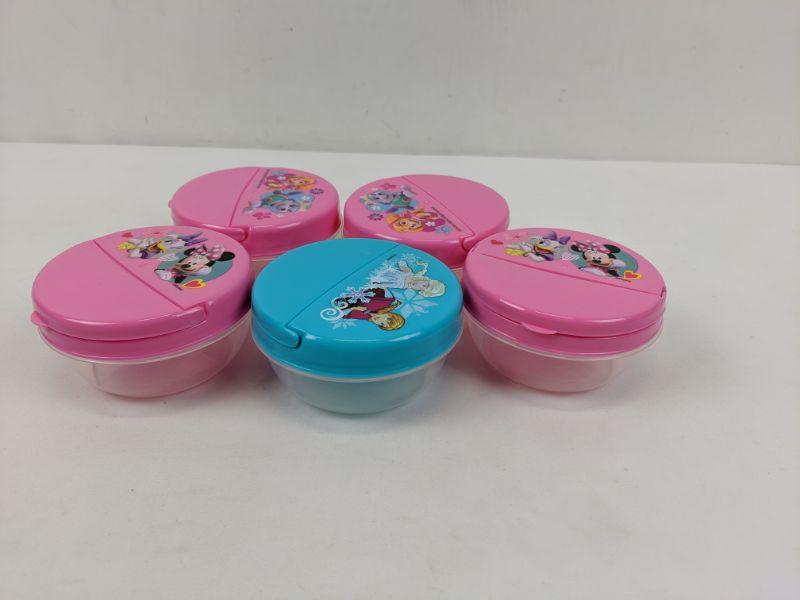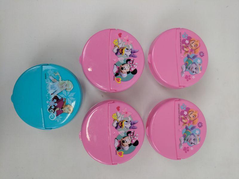 5 Snack Containers, MInnie Mouse, Frozen, Paw Patrol - New