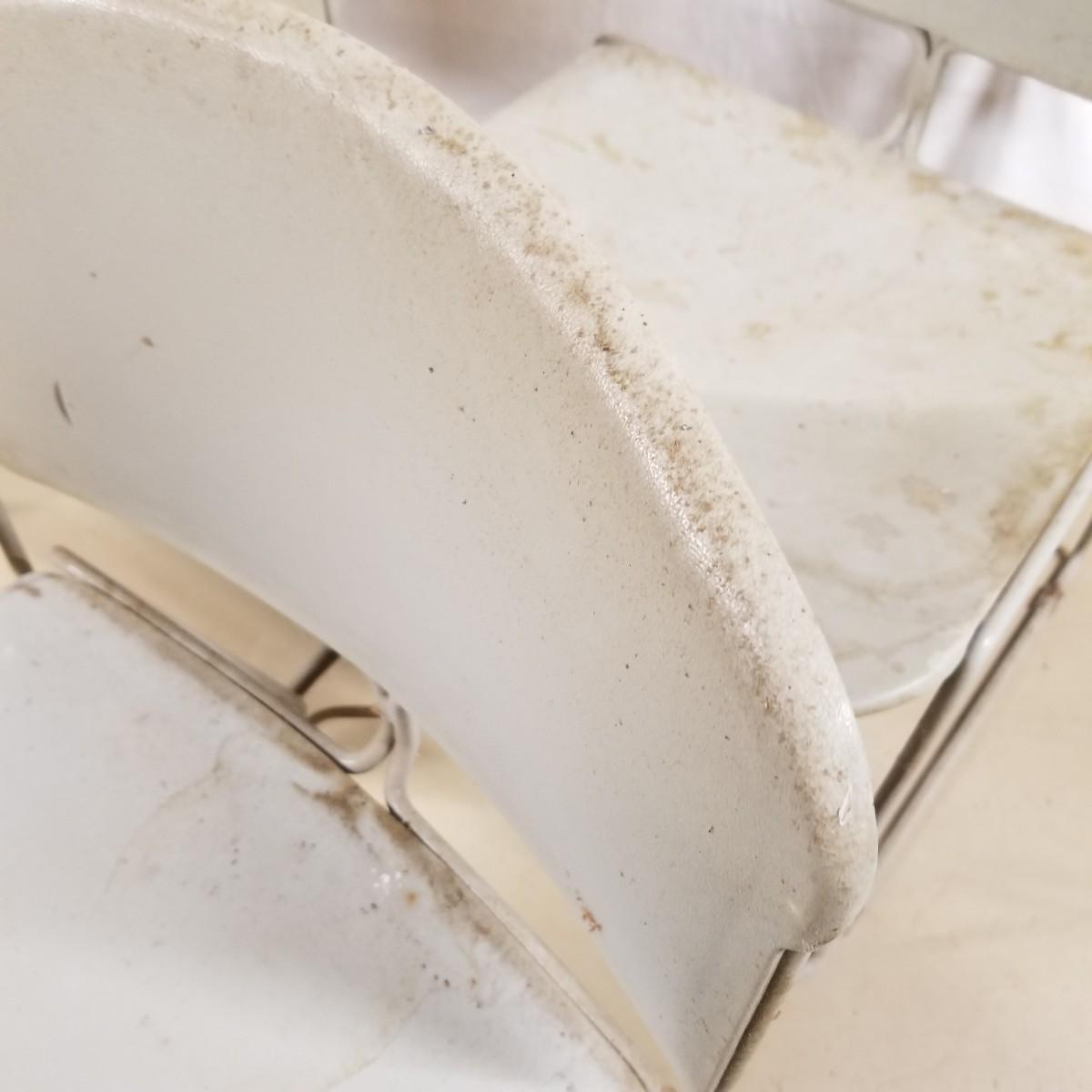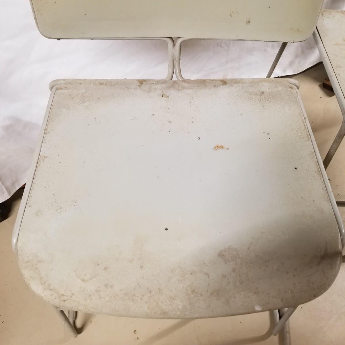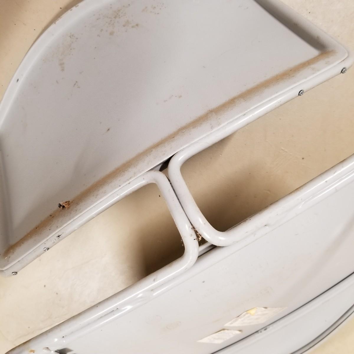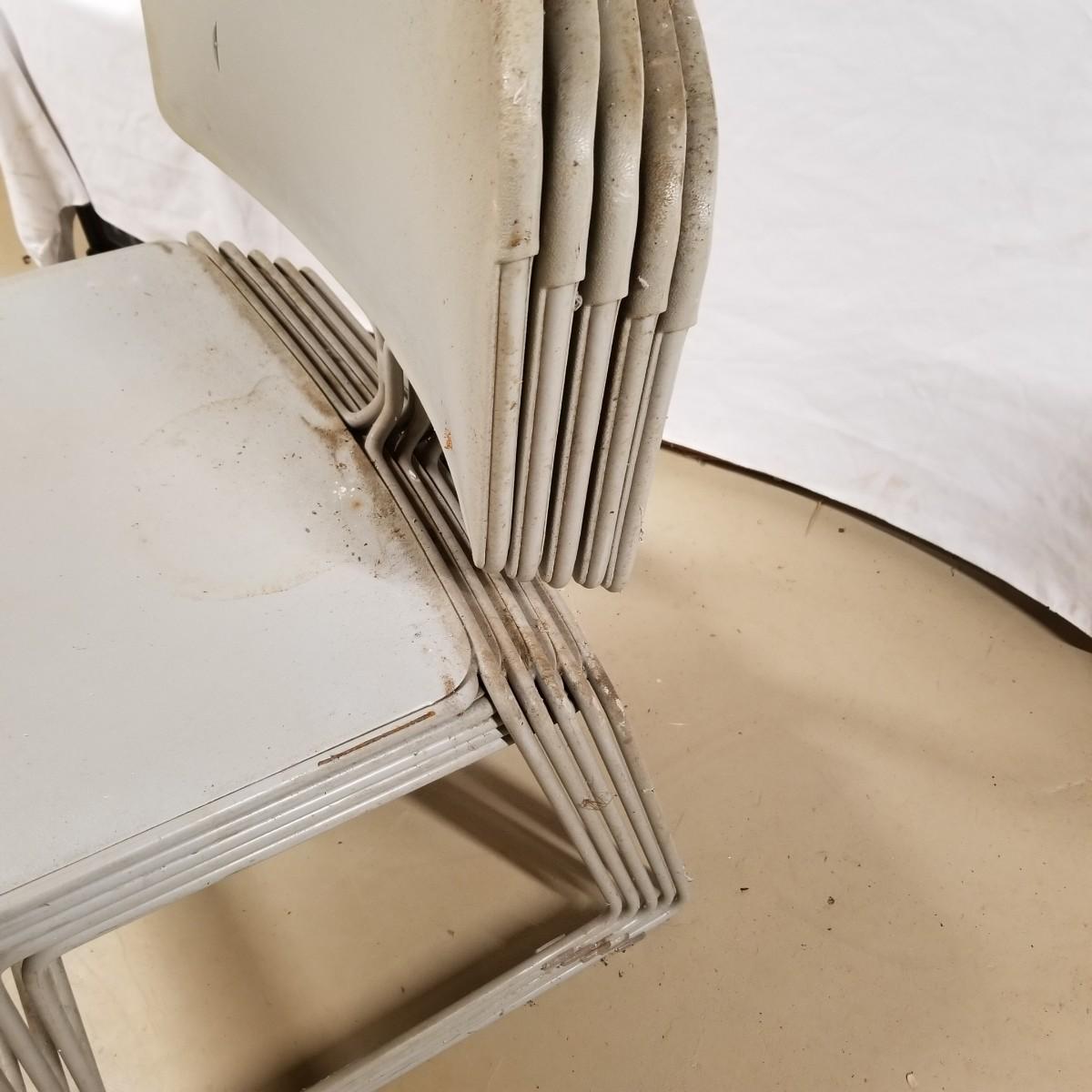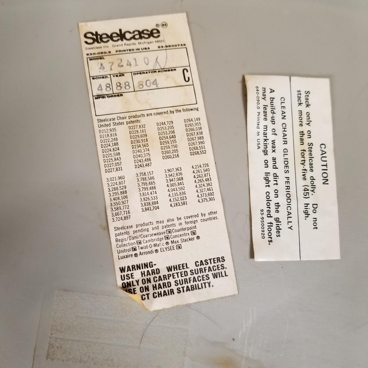 Steelcase wireframe stacking chairs with hard plastic backs and seats, model 427410. Foot pads on bottom rails. Individual chair is 18 1/2" x18" x30", seat height is 18". Stack of five chairs is 34" h. In good shape but needs some TLC cleaning. Local pickup only.