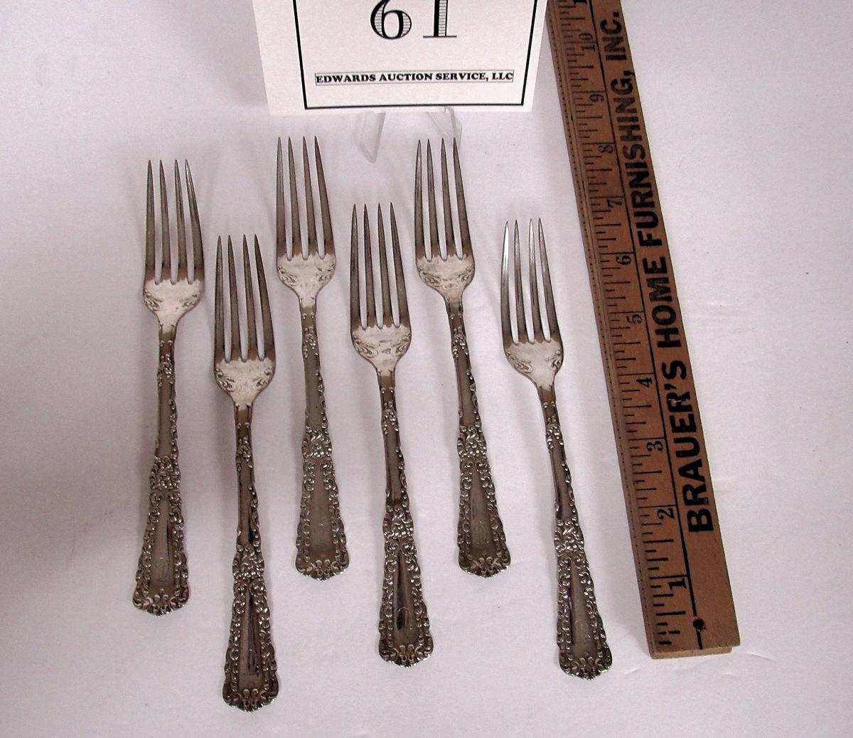 6 Antique Sterling Forks, Venus Pattern by Watrous Mfg Co, 6.9 Oz Total