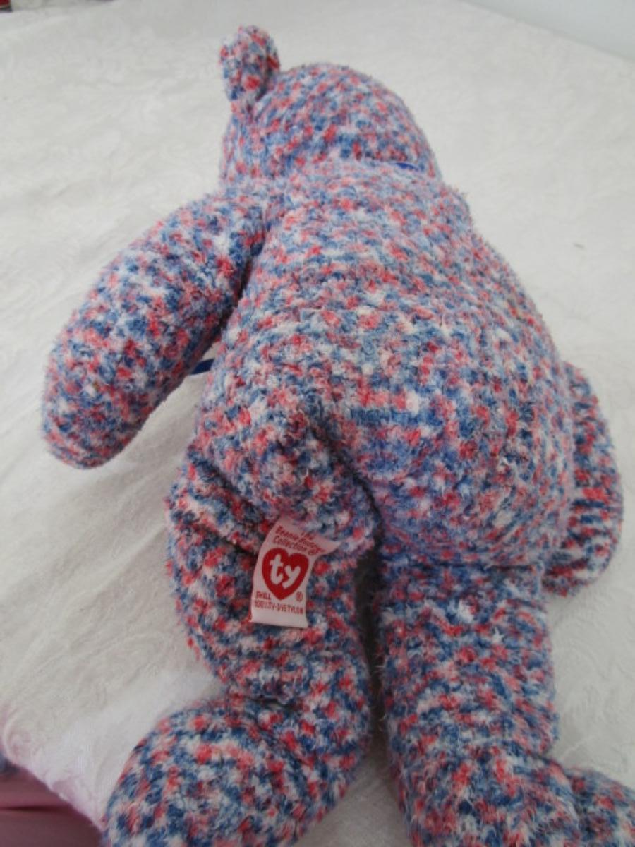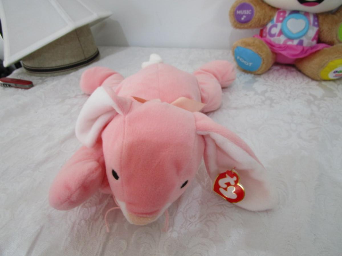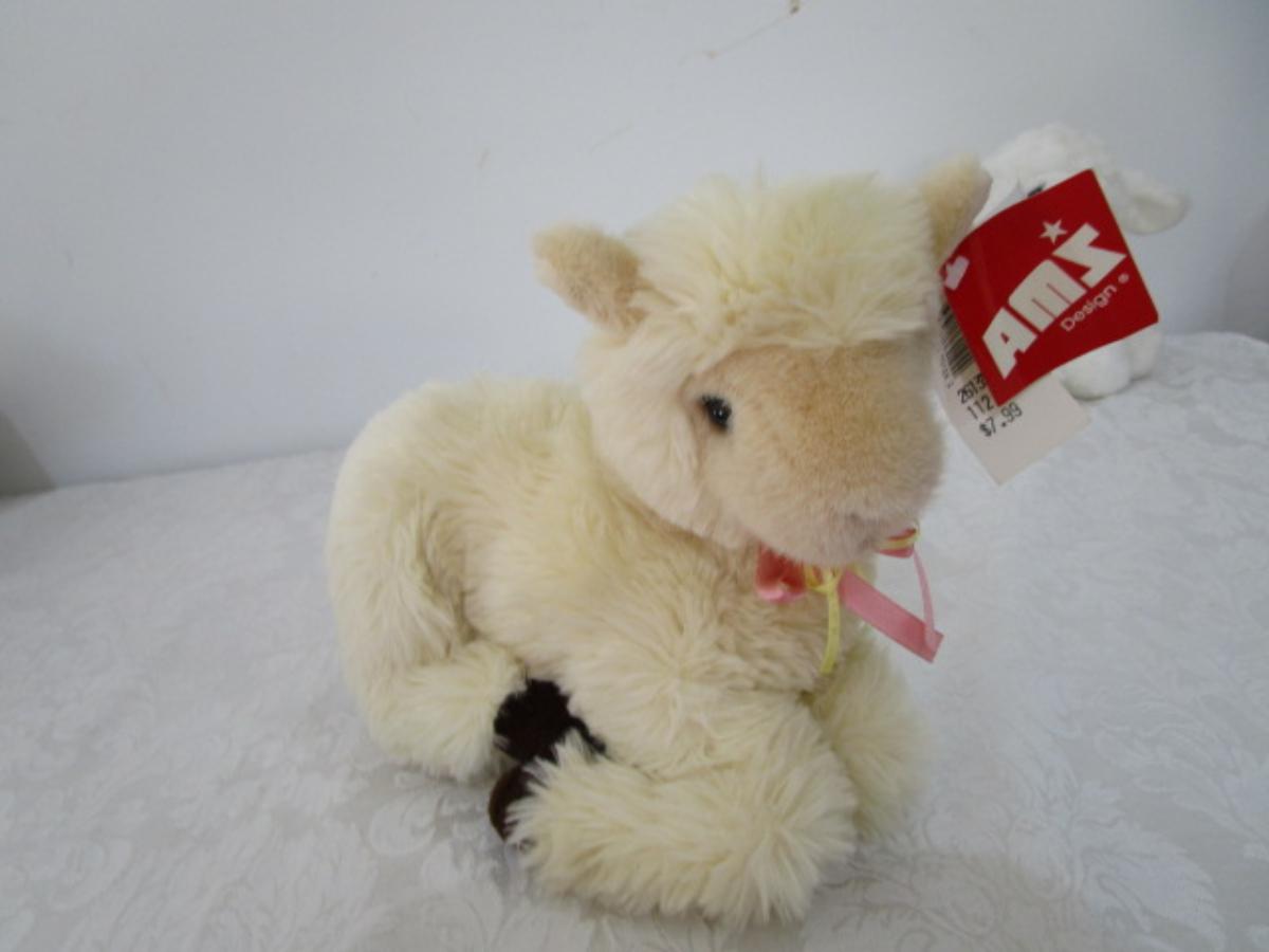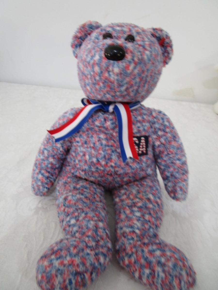 5 stuffed animals one of which is a Fisher Price learning bear
