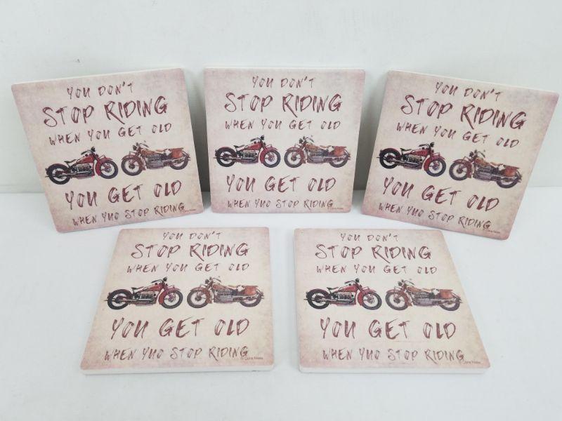 5 Tile Drink Coasters with Motorcycle Theme. No packaging - New