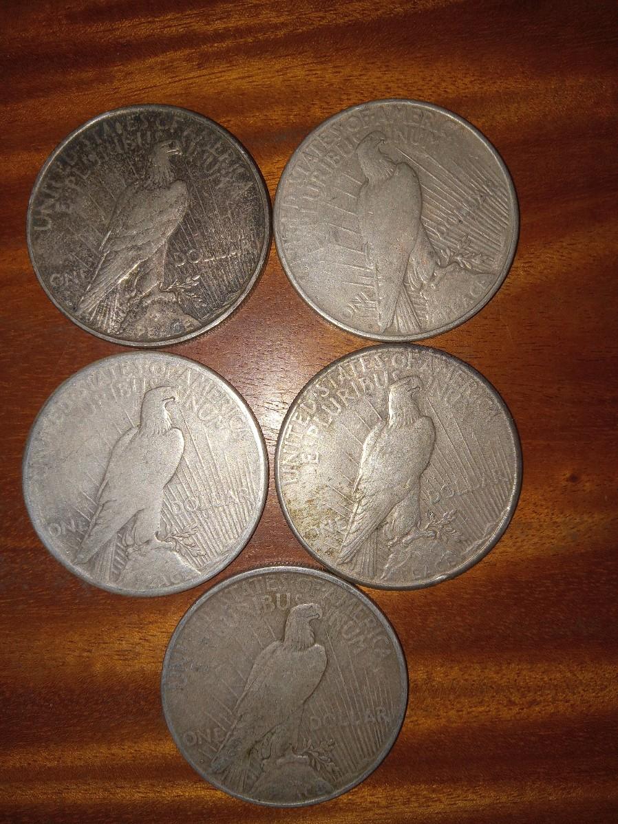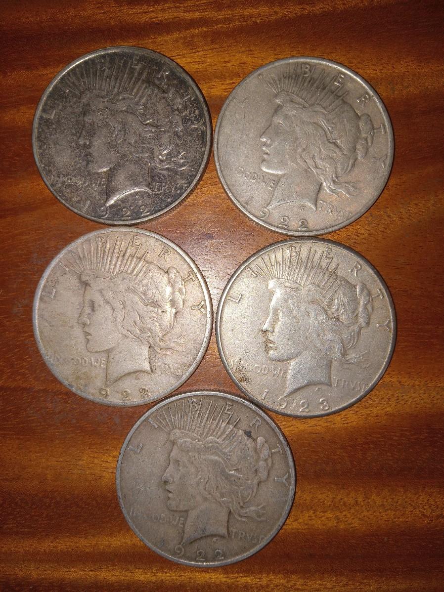 5 various dates peace dollars