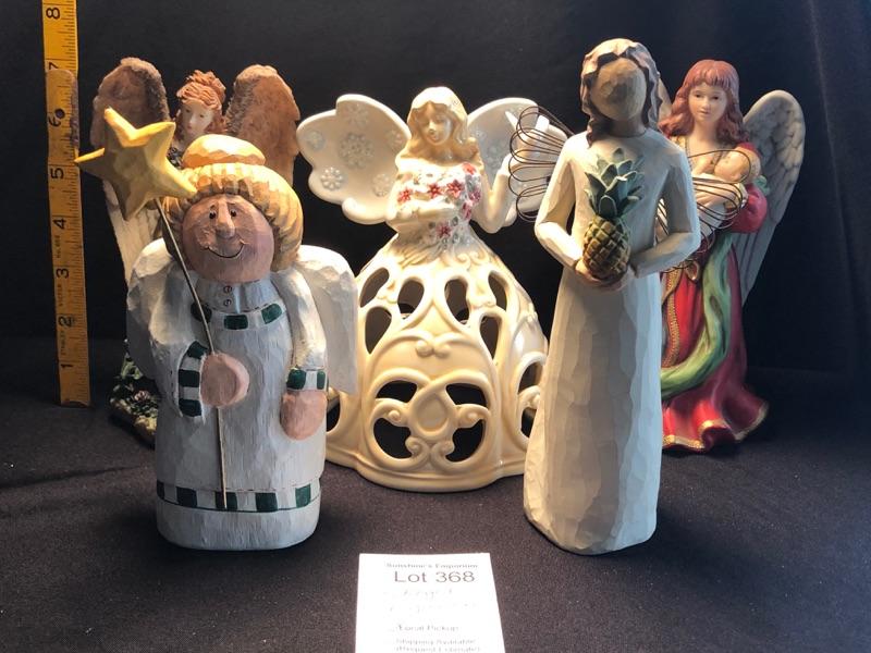 5 Vintage Angel Figurines, Willow Tree - Welcoming Angel, Wood, Porcelain, Homco Angel Holding Baby - Lot 368