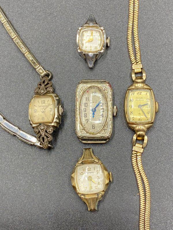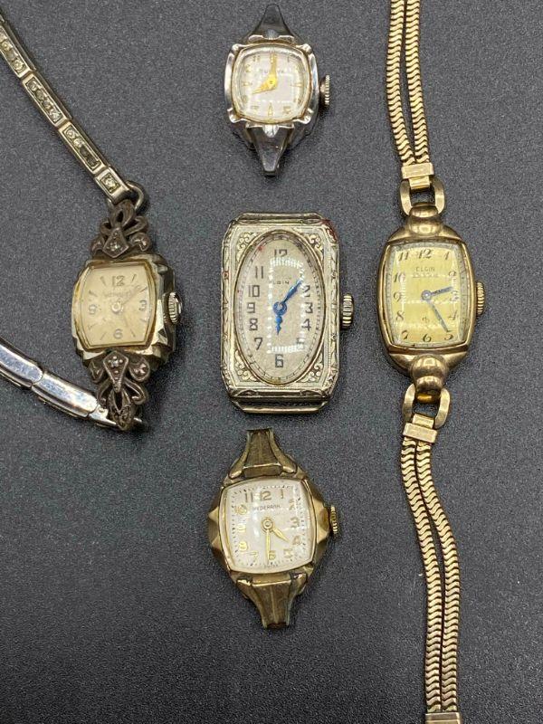 5 vintage/antique ladies watches. FOR PARTS OR REPAIR. Three are 10k gold filled or plated. None are working.