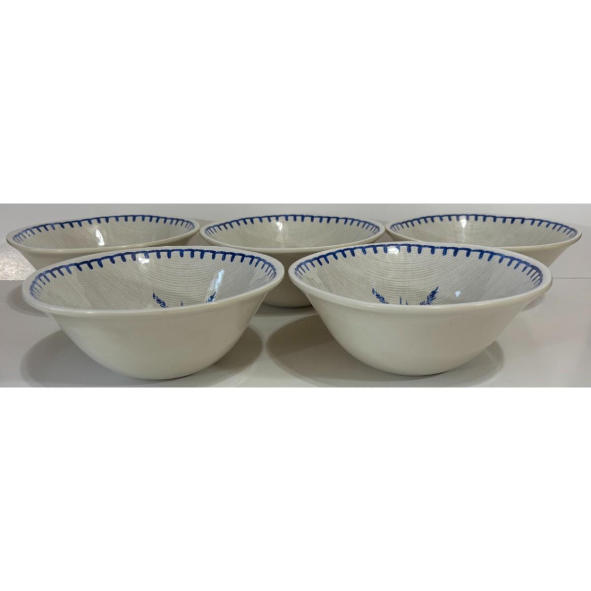 You get five bowls that are in good condition with minor surface wear. Each bowl stands approximately 2.75" tall and has a 6.75" diameter at the rim. Please see all pictures. Thank you for looking. As a reminder, if this is a lot, we do not break up lots. Also, all items are prepacked, so each item is sent individually. Any item that qualifies for media mail and weighs over one pound will be shipped via media mail. Otherwise, the item will be shipped USPS ground advantage, or UPS ground. Shipping for this item is $12.00. Items ship within two days after payment is received. Item SKU is OTH3189.
