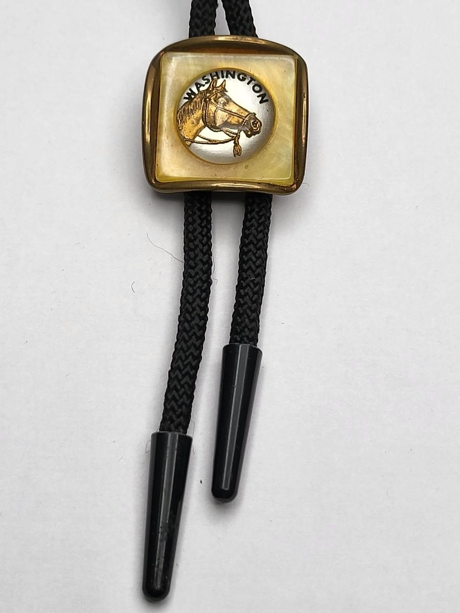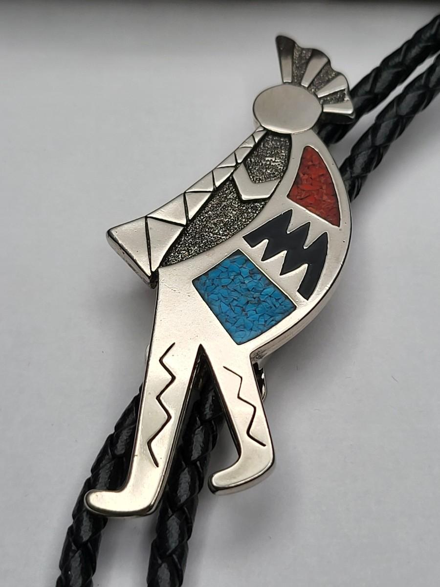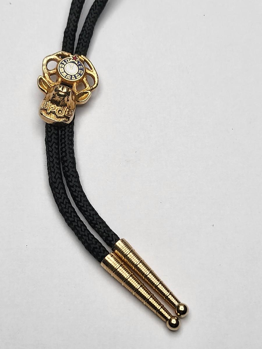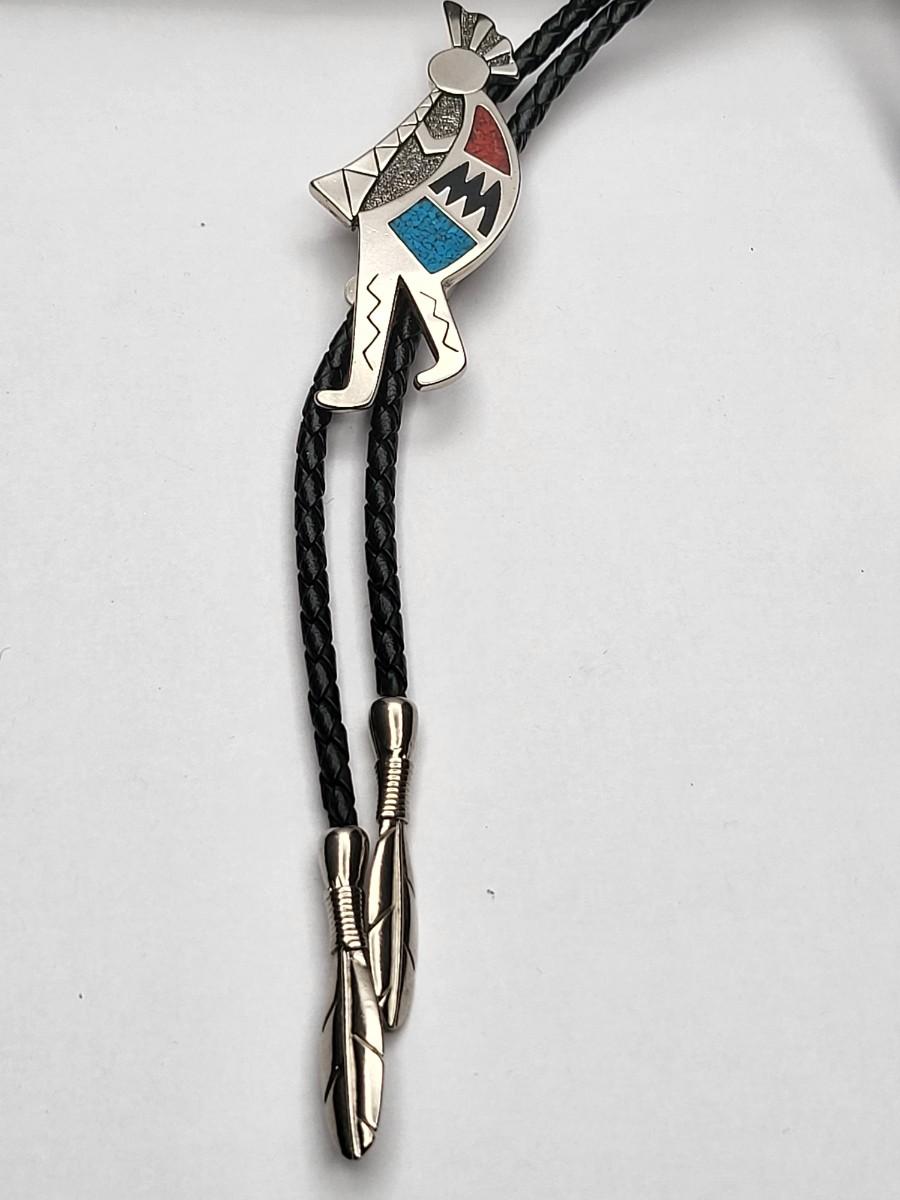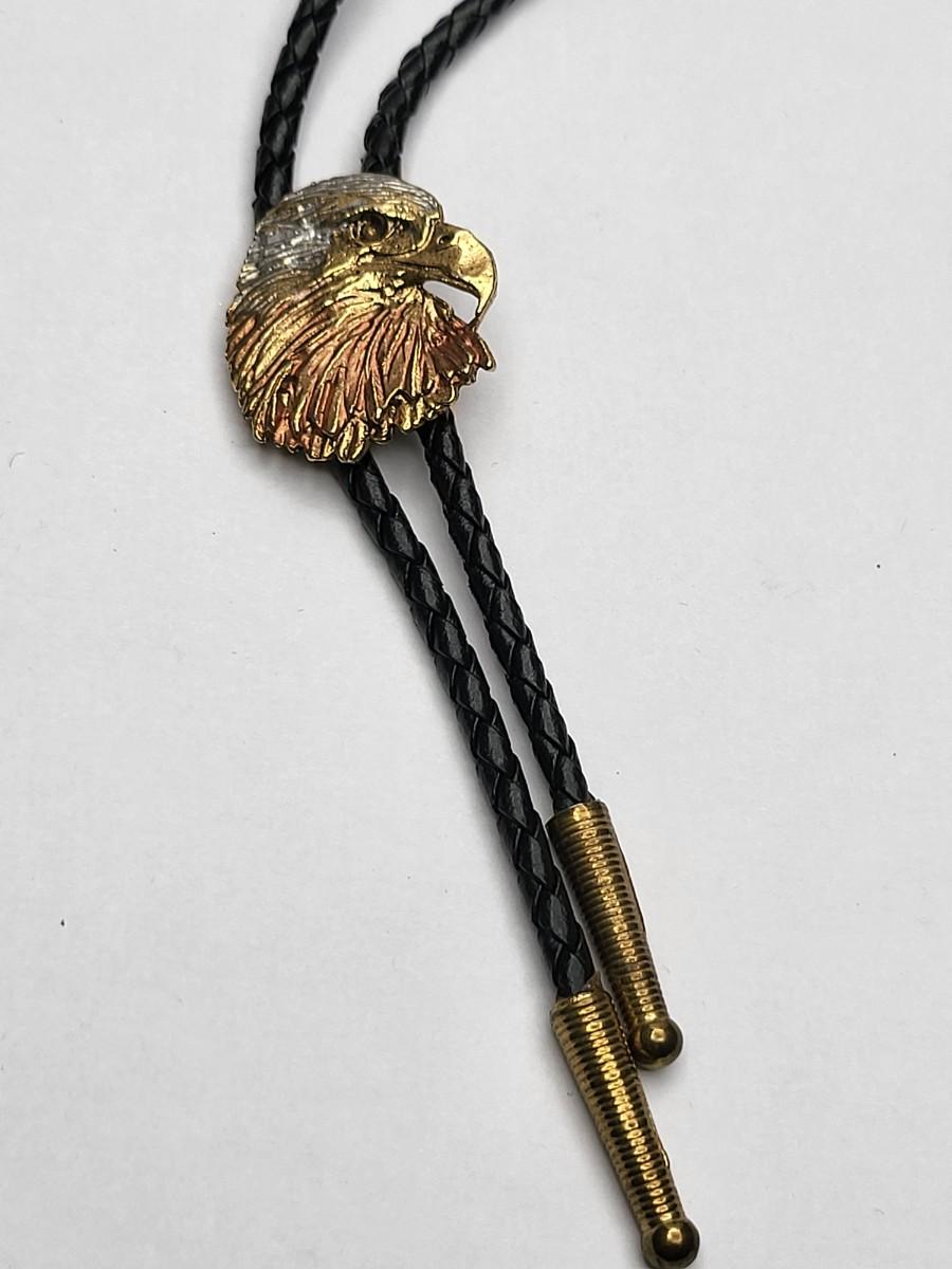Lot of five, braided leather and silk cord, various vintage bolo ties.