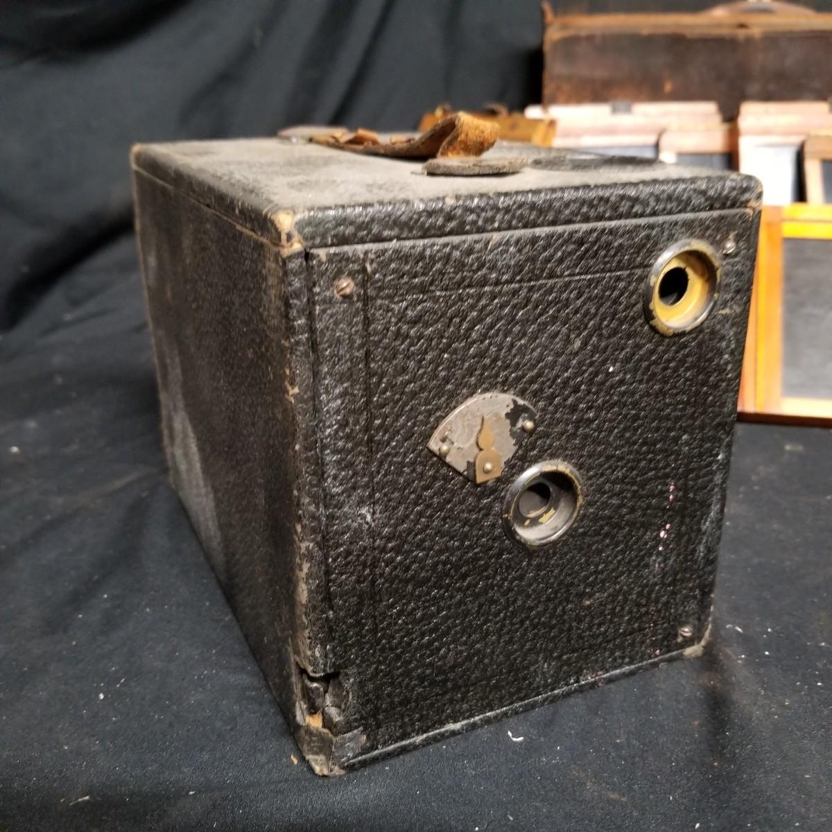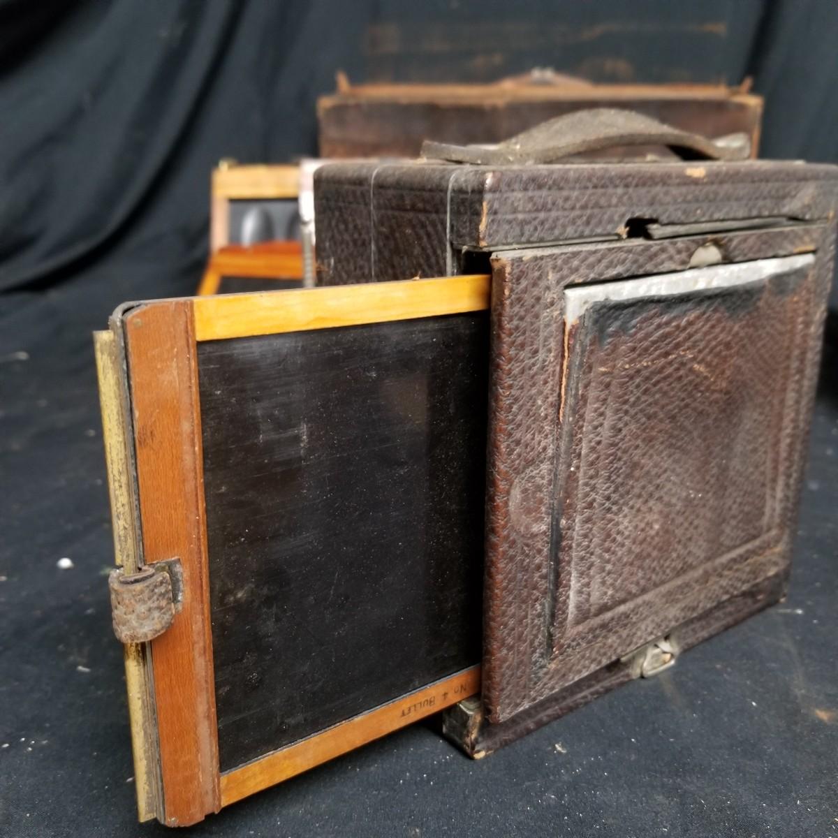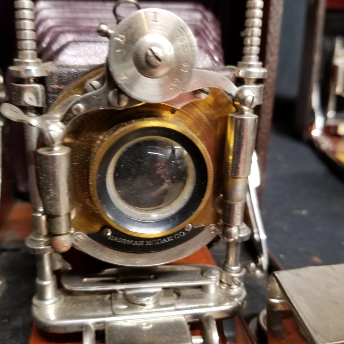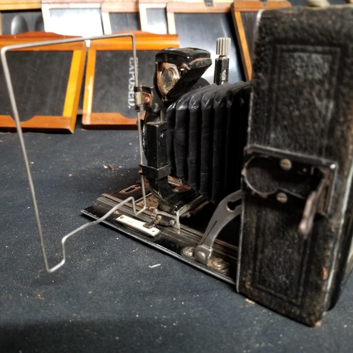 A collection of five vintage cameras, four view style and one box style.  Eastman Kodak, Korona Petit, others.  Also several sheet film holders and the original manual for a Kodak No. 3 Brownie camera.  Cameras in fair to good condition, not tested. See photos for details. Shipping available.