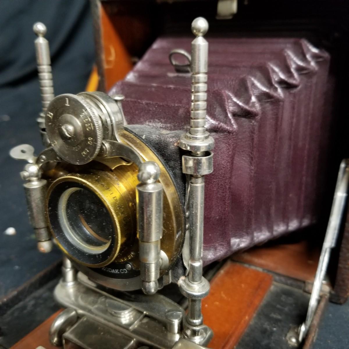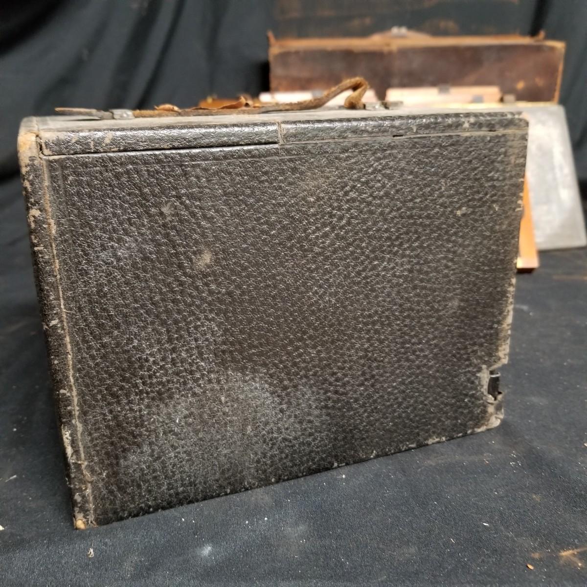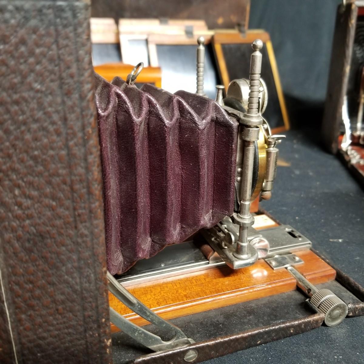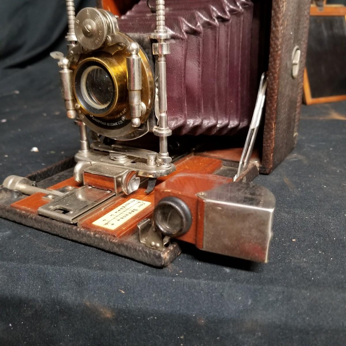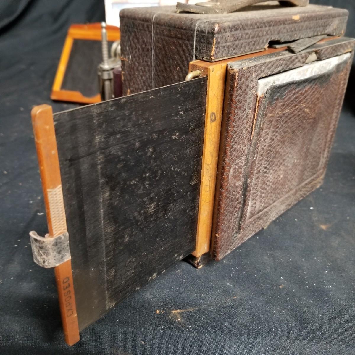 A collection of five vintage cameras, four view style and one box style.  Eastman Kodak, Korona Petit, others.  Also several sheet film holders and the original manual for a Kodak No. 3 Brownie camera.  Cameras in fair to good condition, not tested. See photos for details. Shipping available.