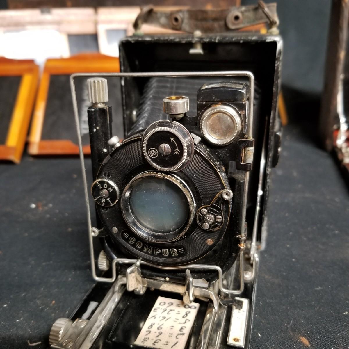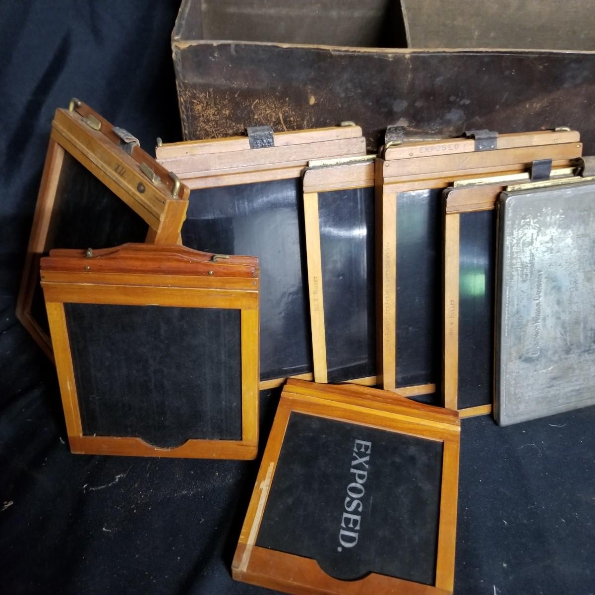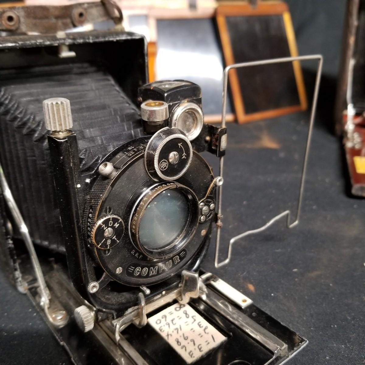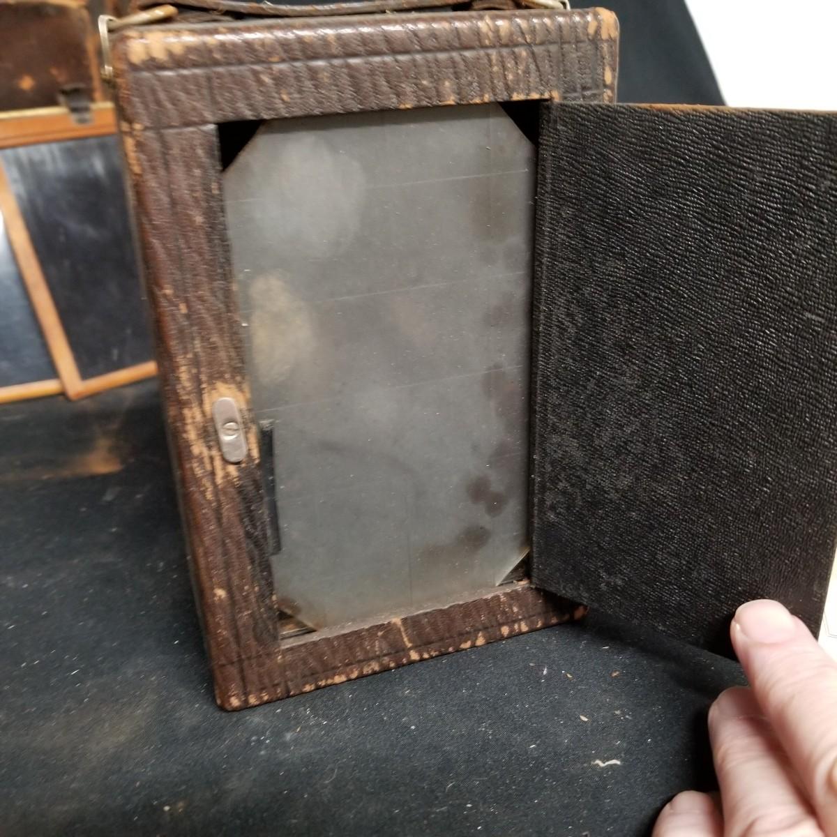 A collection of five vintage cameras, four view style and one box style.  Eastman Kodak, Korona Petit, others.  Also several sheet film holders and the original manual for a Kodak No. 3 Brownie camera.  Cameras in fair to good condition, not tested. See photos for details. Shipping available.