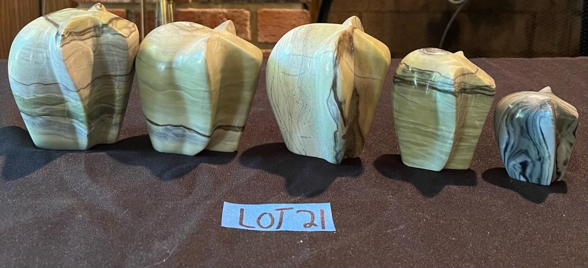5 Vintage Carved Stone Elephants