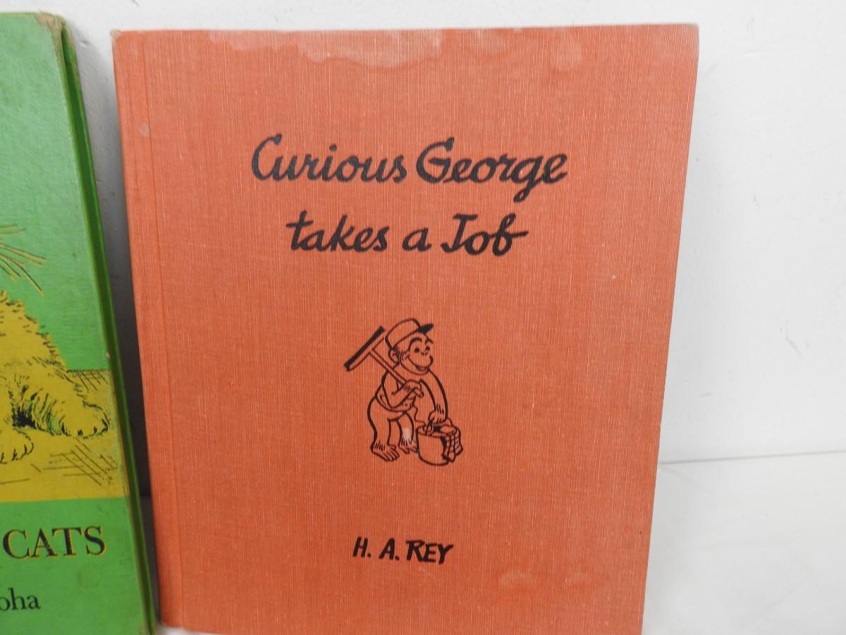 5 Vintage Children's Books, Curious George takes a Job, All Kinds of Cats