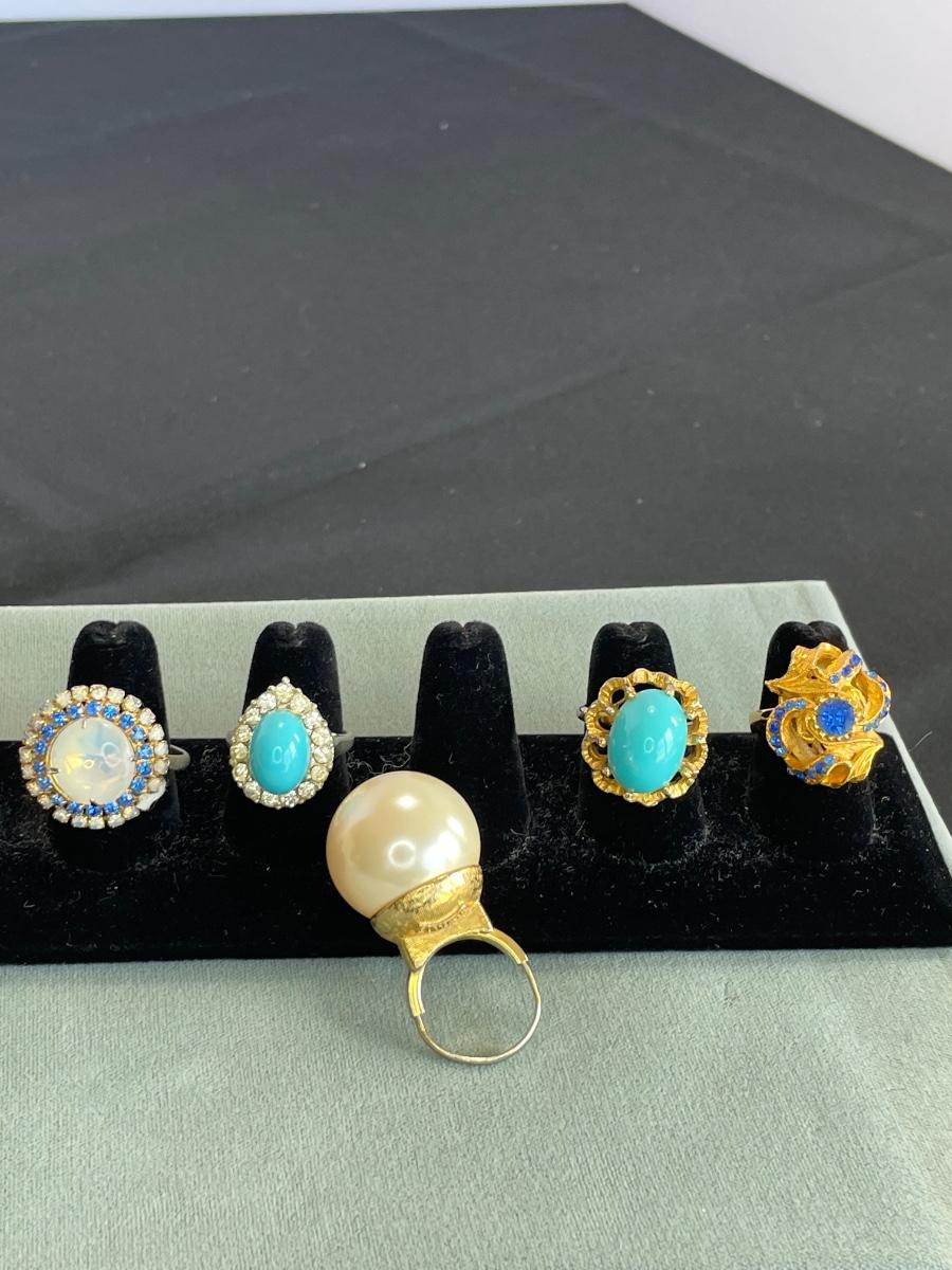 5 Vintage Chunky Rings including Marvella