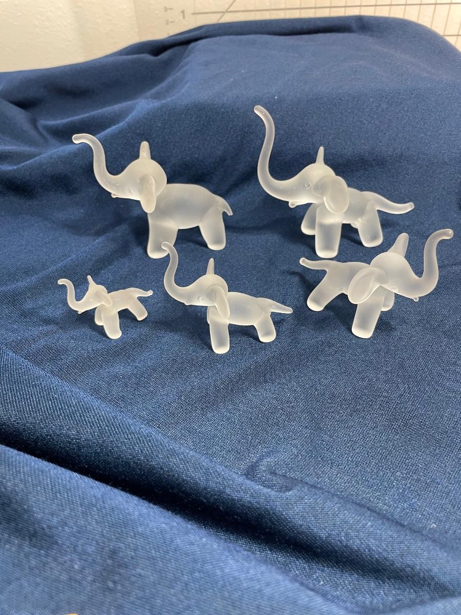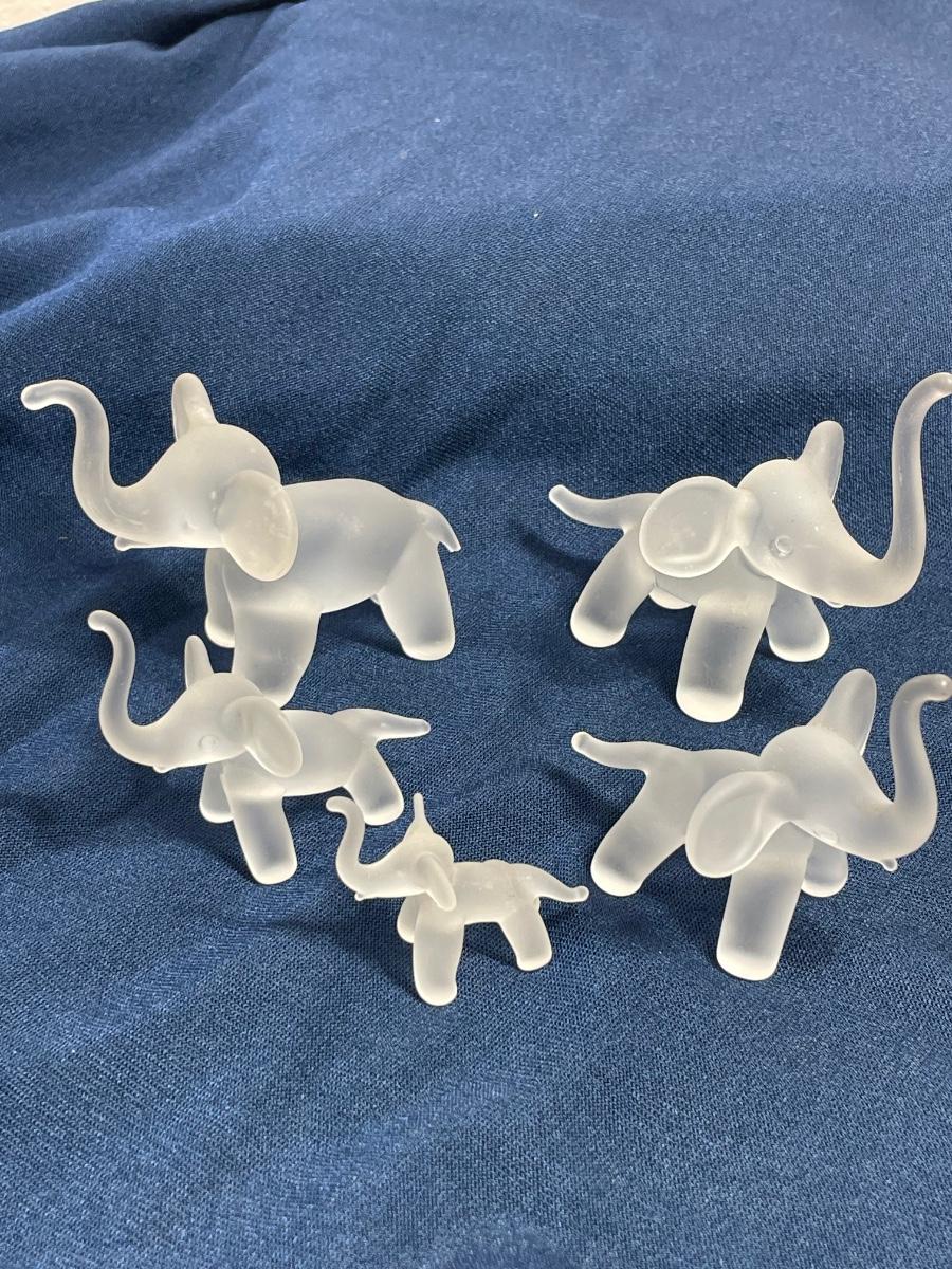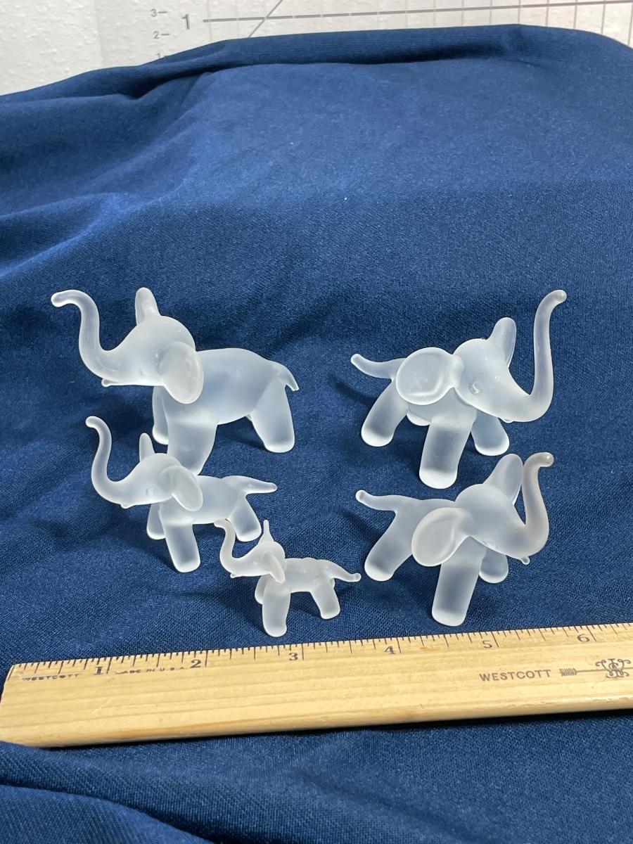 5 Vintage Frosted Glass Elephants
