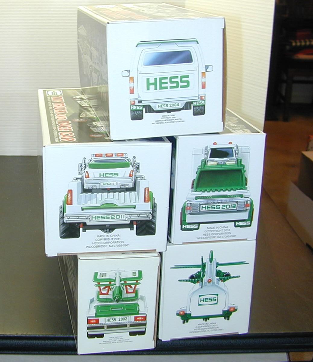 5 Vintage Hess Trucks New in Original Boxes - 2002, 2004, 2011, 2012, 2013 - Lot 472