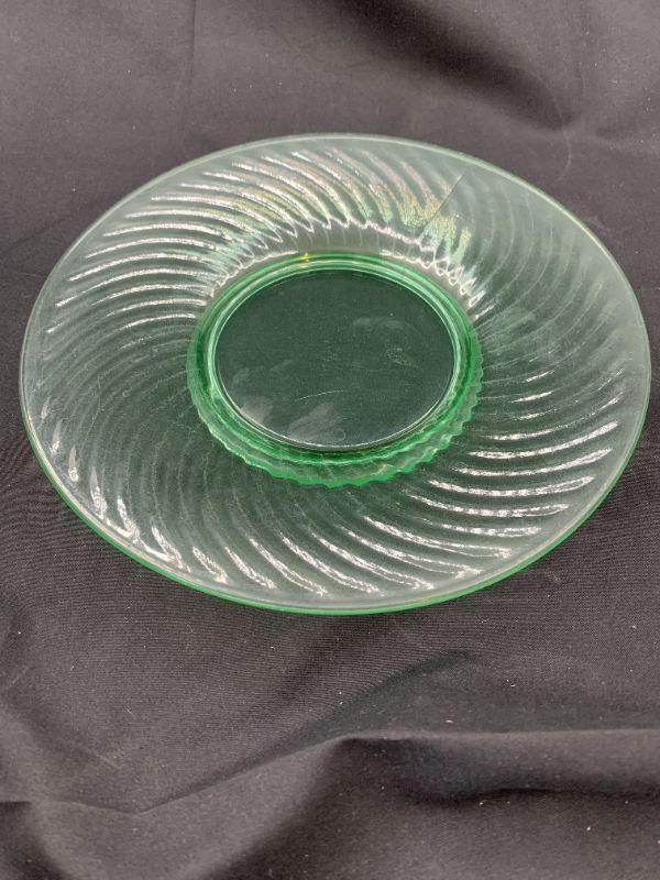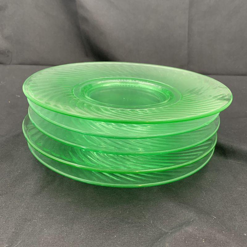 Depression glass GREEN SPIRAL pattern Luncheon plates.