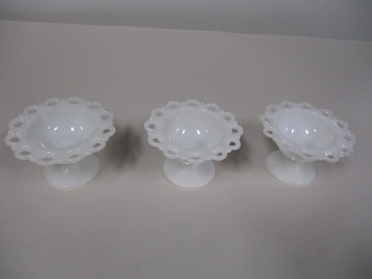 5" Vintage Lacy Scalloped Edge Milk Glass Pedestal Candy Nut Dish