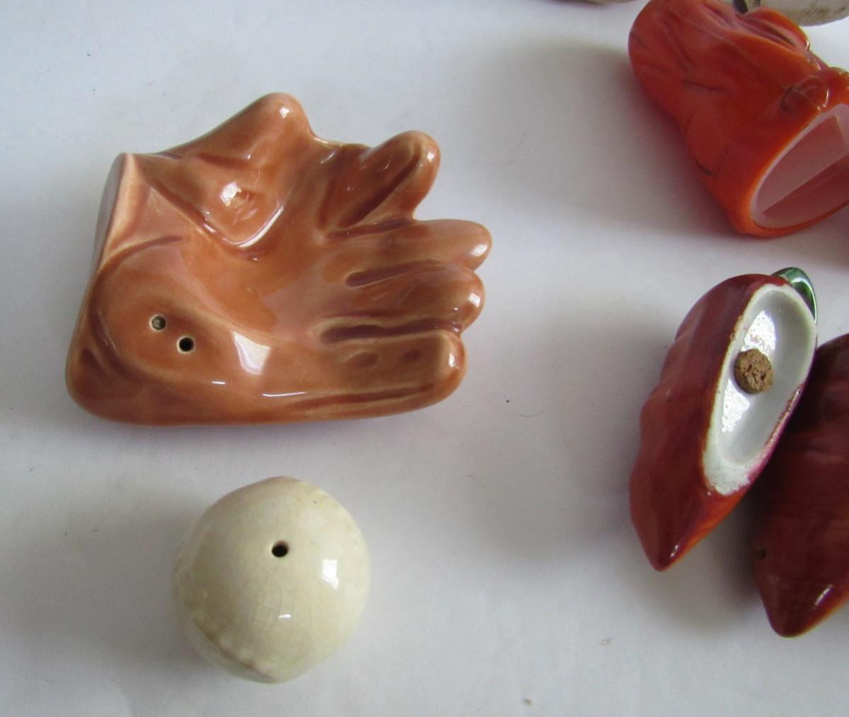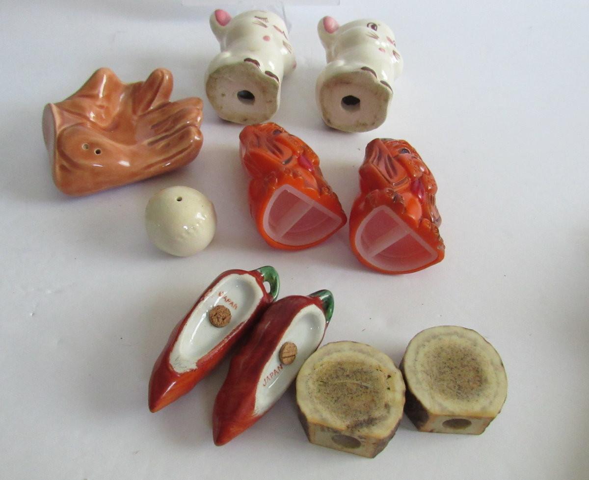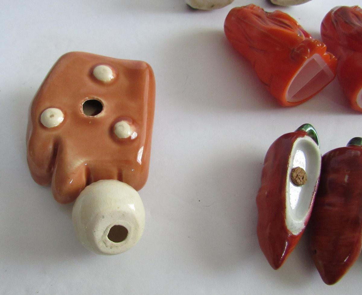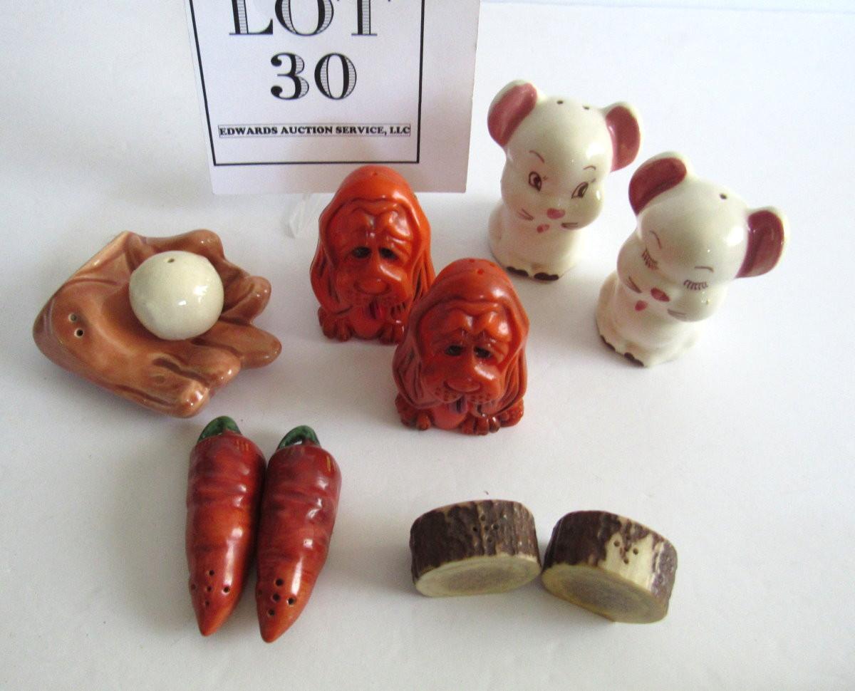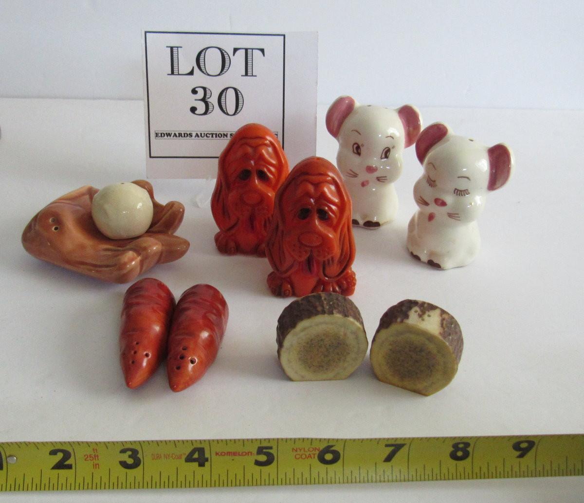 Dogs are hard plastic, unsure of what the little logs are made out of. Rest are china/pottery. They are all in good shape with little wear. More wear on the logs. Shipping is available at actual shipping cost plus $5.00 handling fee per box for supplies/labor. See our terms for details. All sales are final. Condition notes may not be all inclusive, we may miss some issues as most vintage items are not in mint condition and have some degree of wear, paint loss, etc, but we always try to note obvious damage.