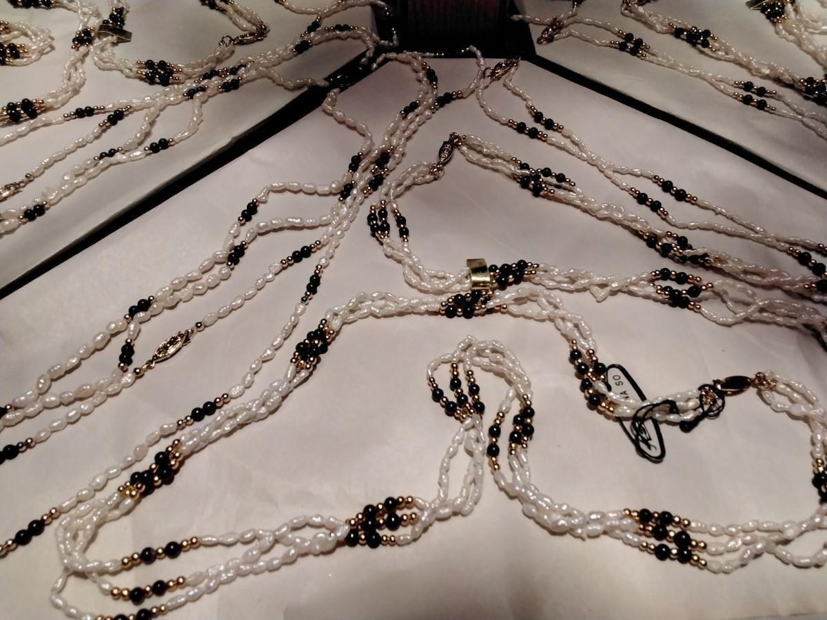 5 varied vintage necklaces some still with tags. These are new old stock from a jewelry warehouse. They range from 1 strand to 5 and 16" to 28". Varied gemstones of lapis lazuli, tiger eye, onyx, pink angel coral, amethyst and garnet. These sell for $25 a piece when you can find them. This is the lot you are bidding on