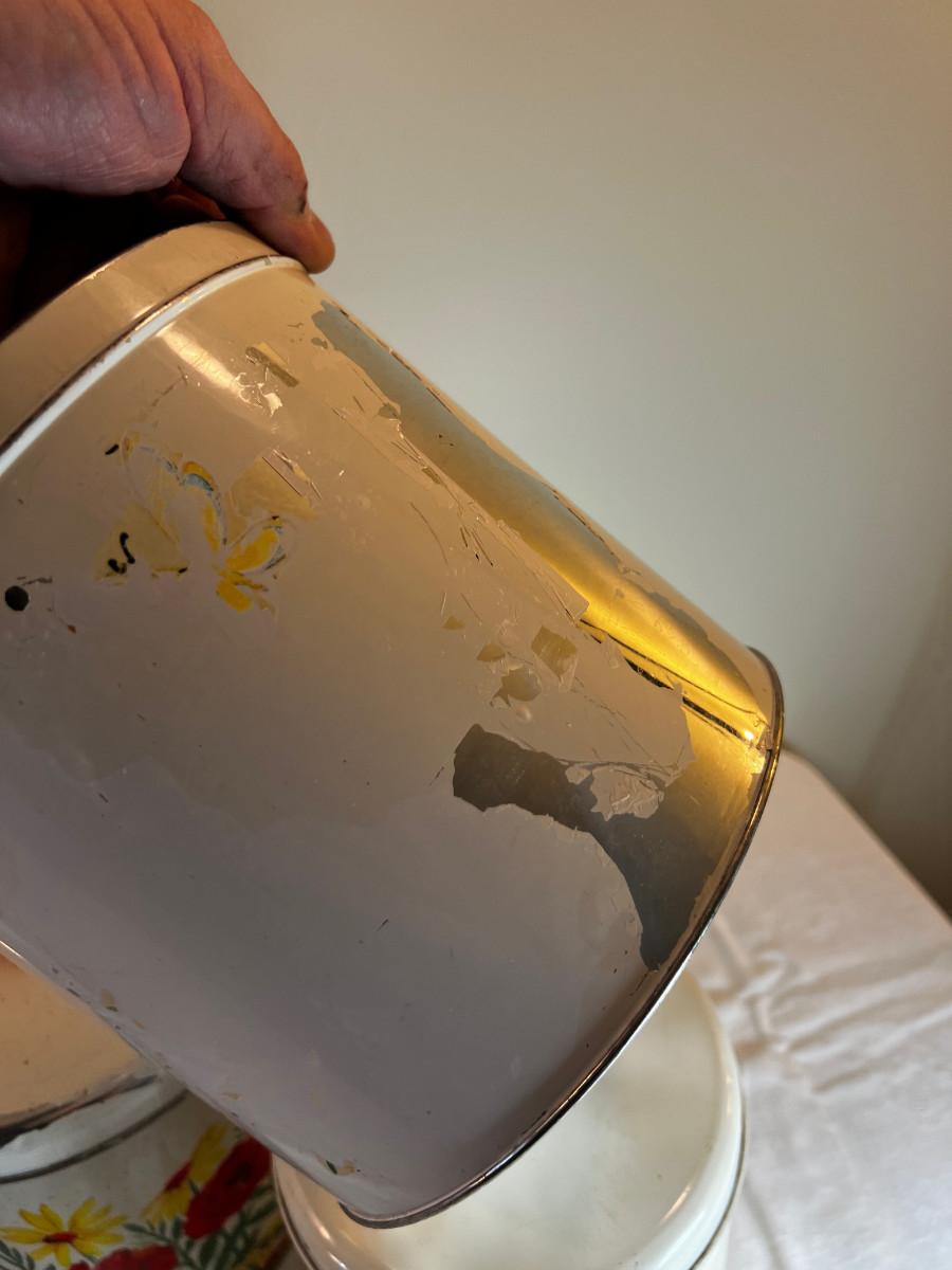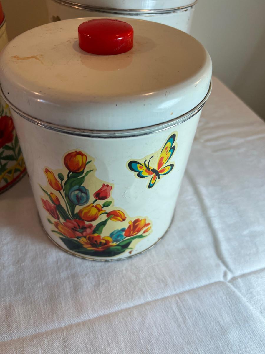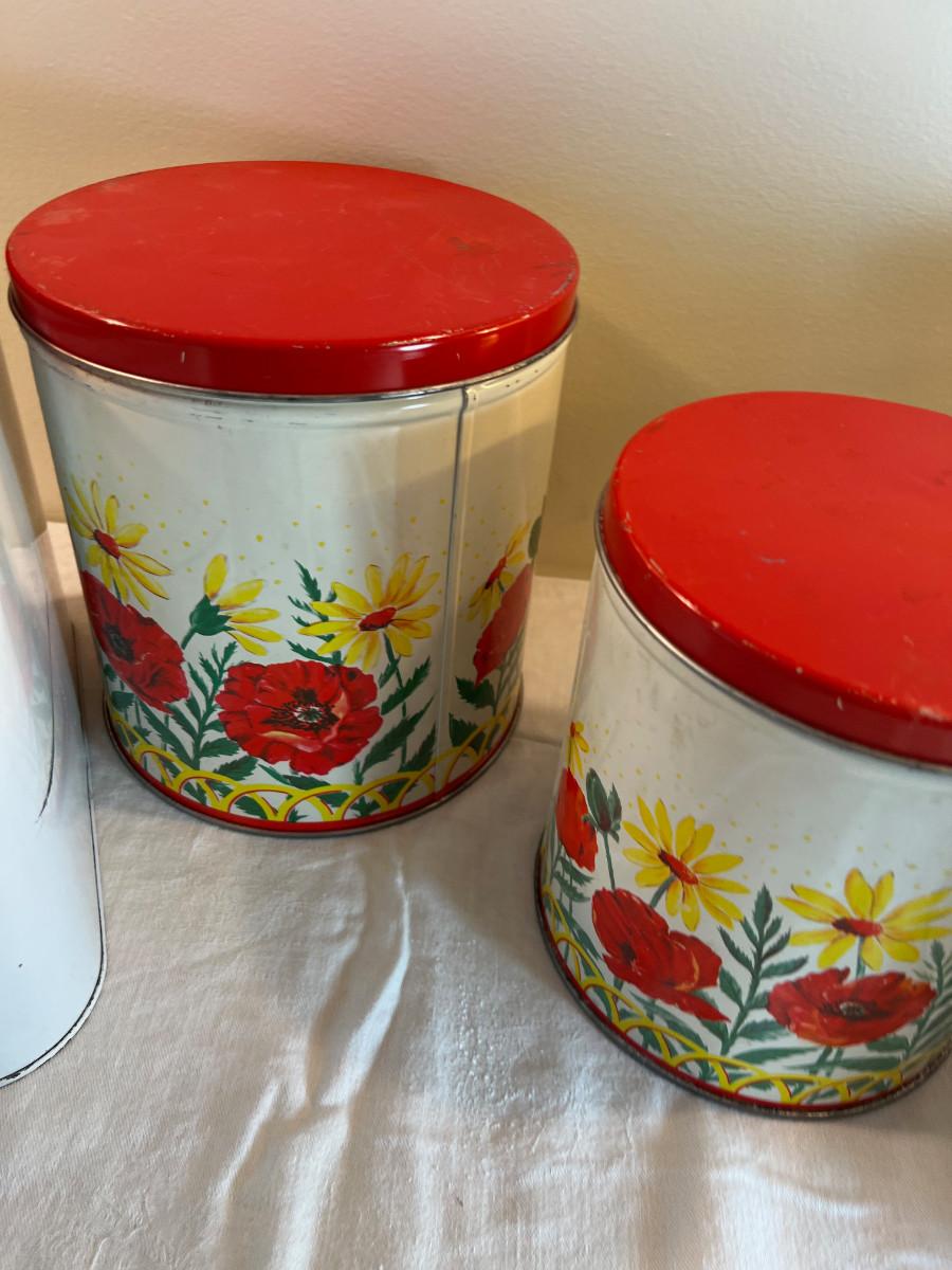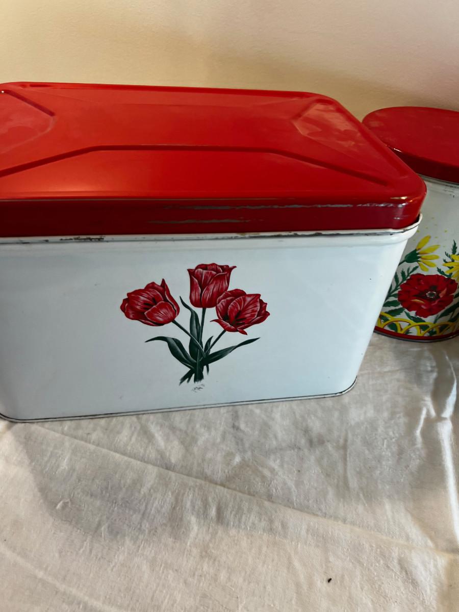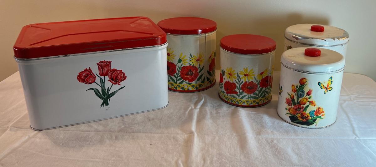 5 Vintage Tin Kitchen Canister / Bread Bin