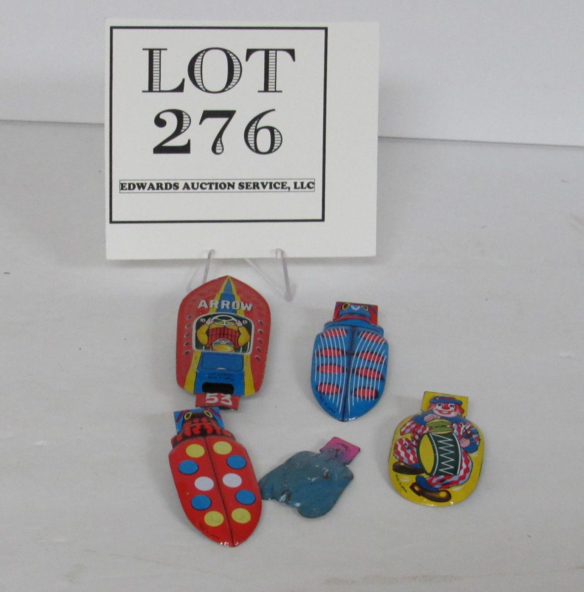 5 Vintage Tin Toys, 4 Clickers, 1 Whistle?