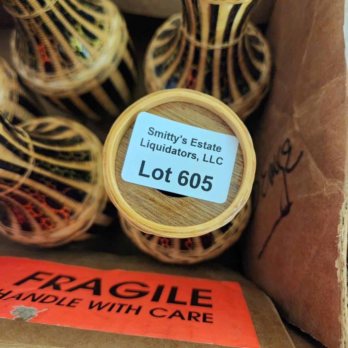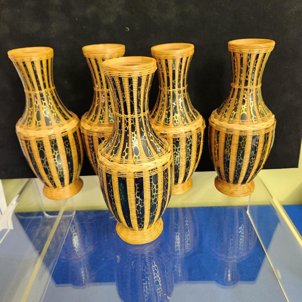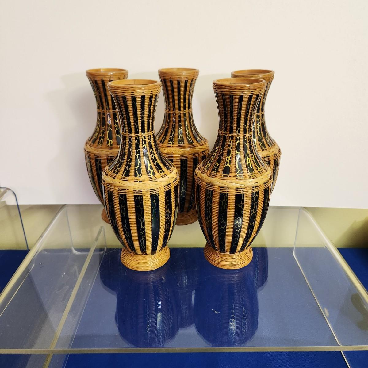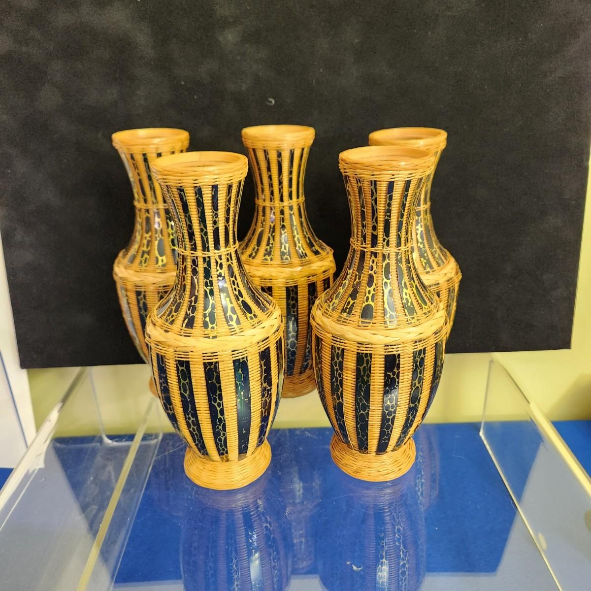 5 Vintage Zhejiang Handicrafts Bamboo Weave Wicker Vase