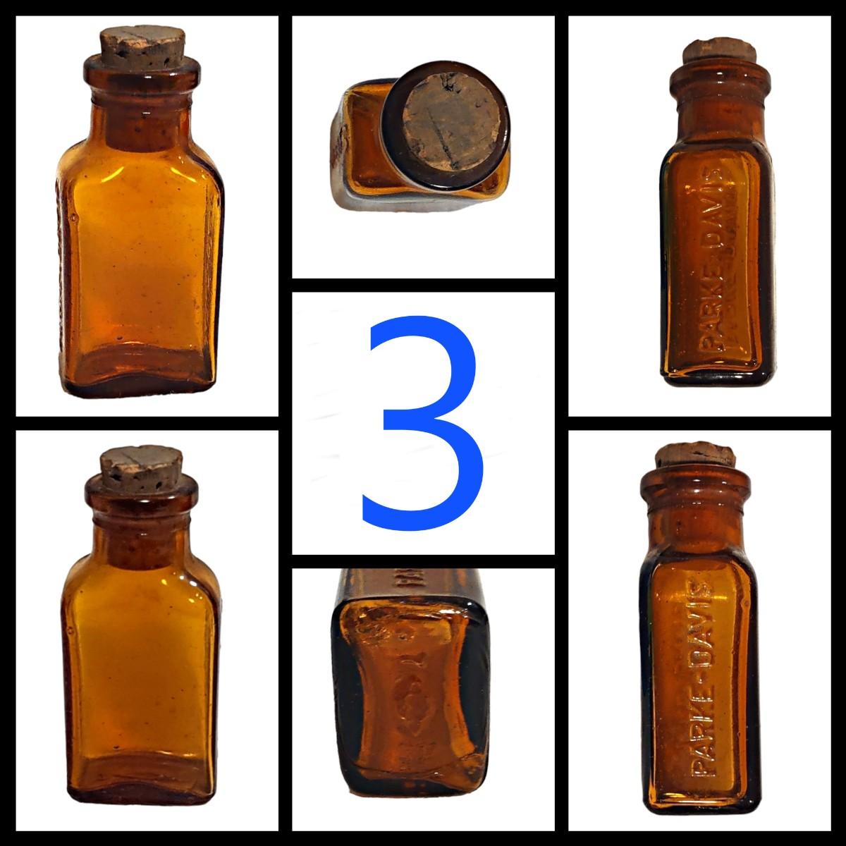 3. Antique Amber Glass Cork Top Bottle w/ original Cork Intact & Marked "PARKE-DAVIS" on Both Sides