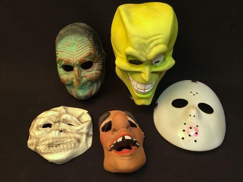 5 vintage-ish Halloween Party face masks Michael Hockey Mask, Jim Carrey's Mask + others