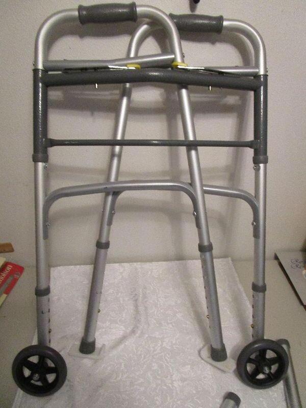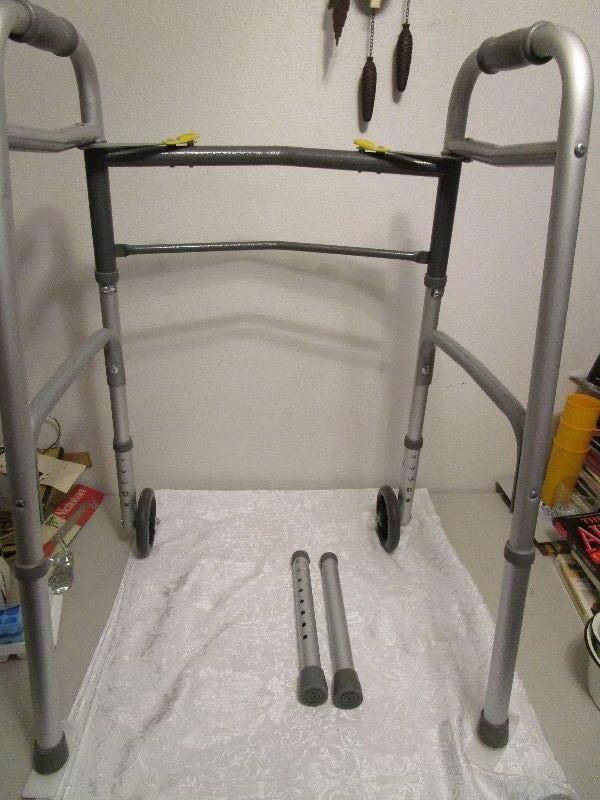 Folding Walker for Adults with Height Adjustable Legs, extra set of legs to replace wheels. Excellent condition.
