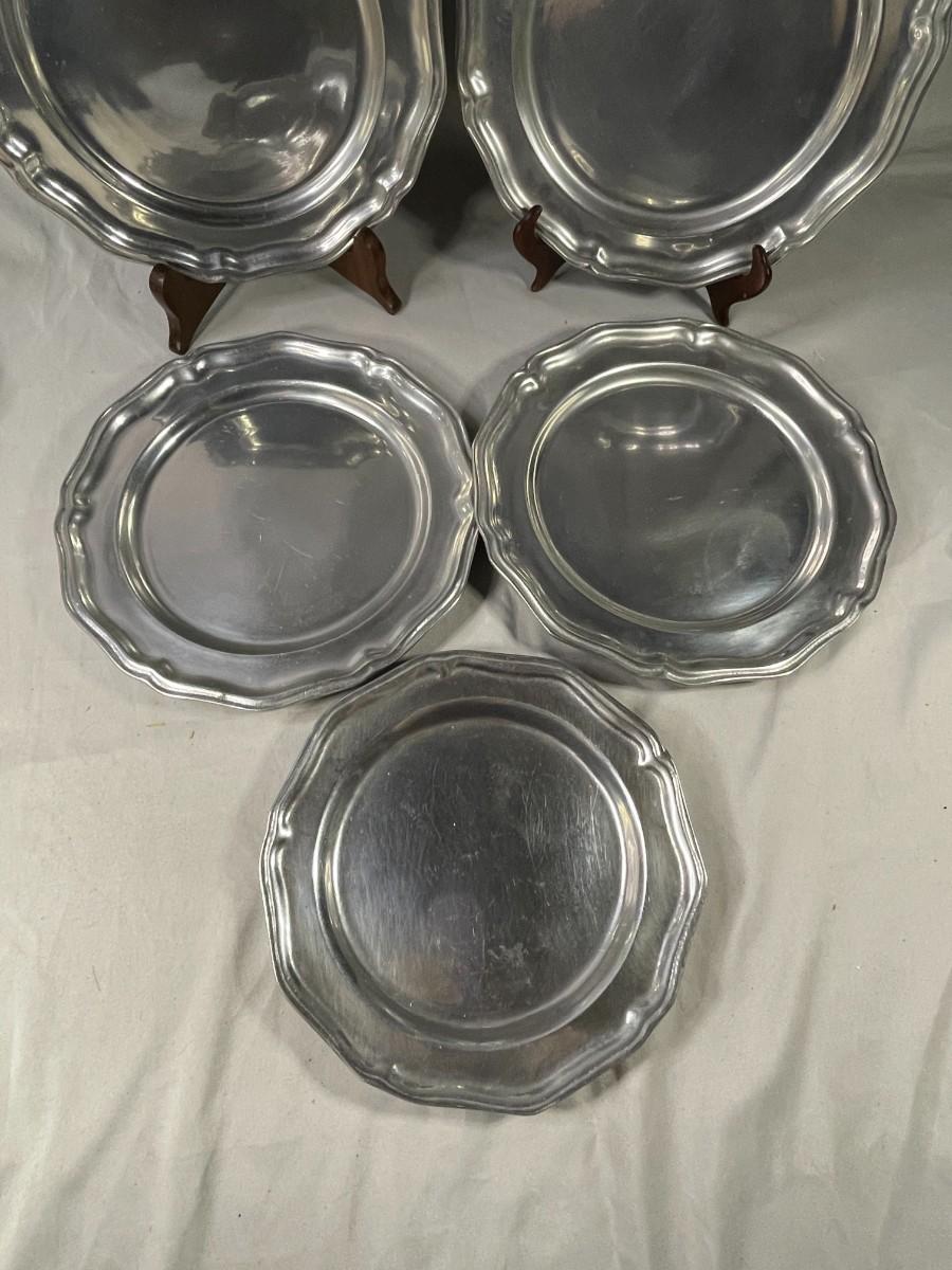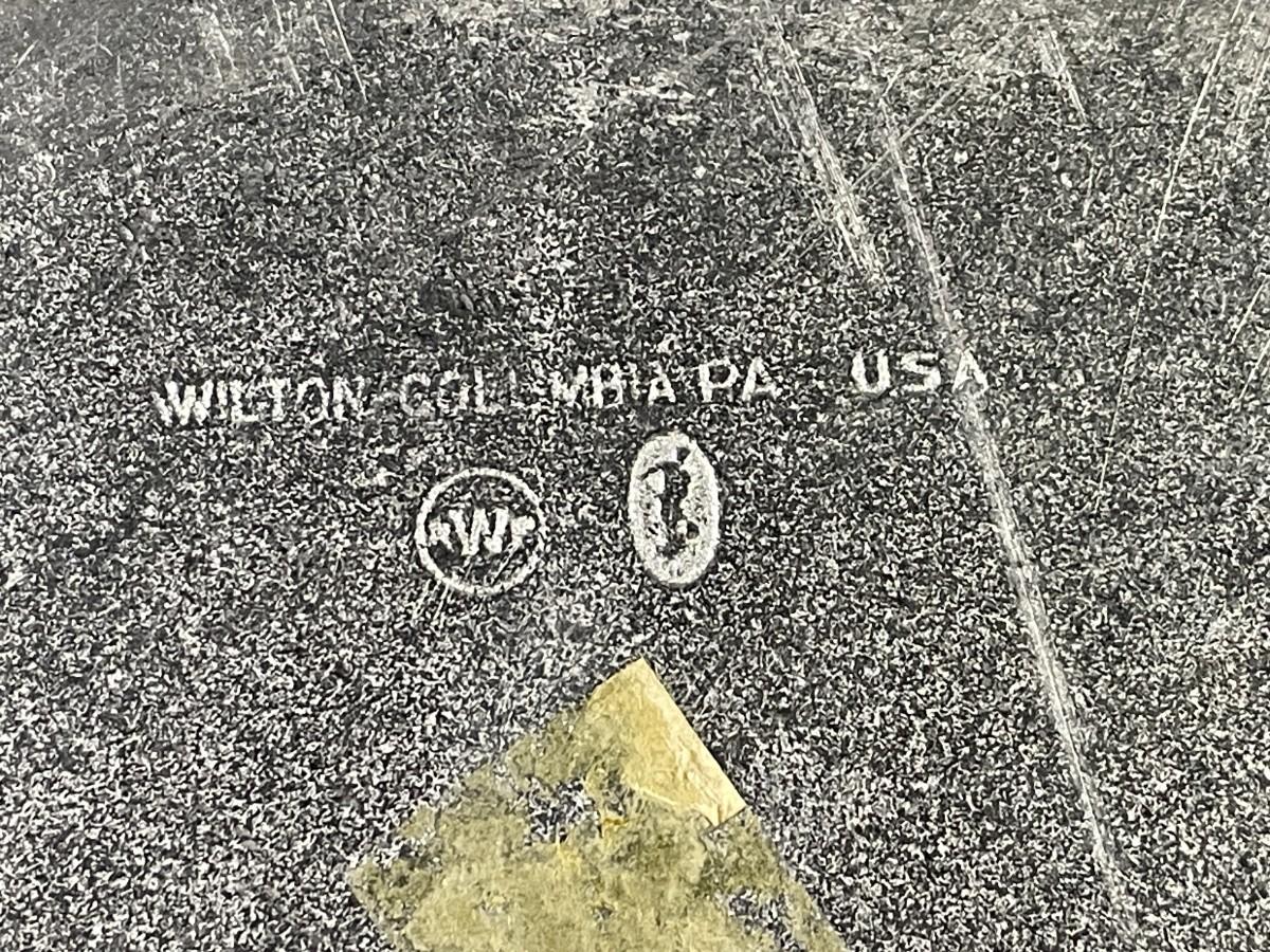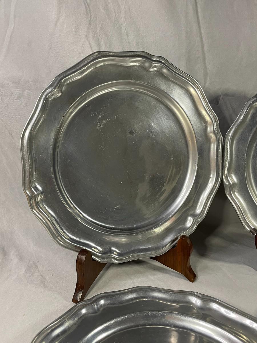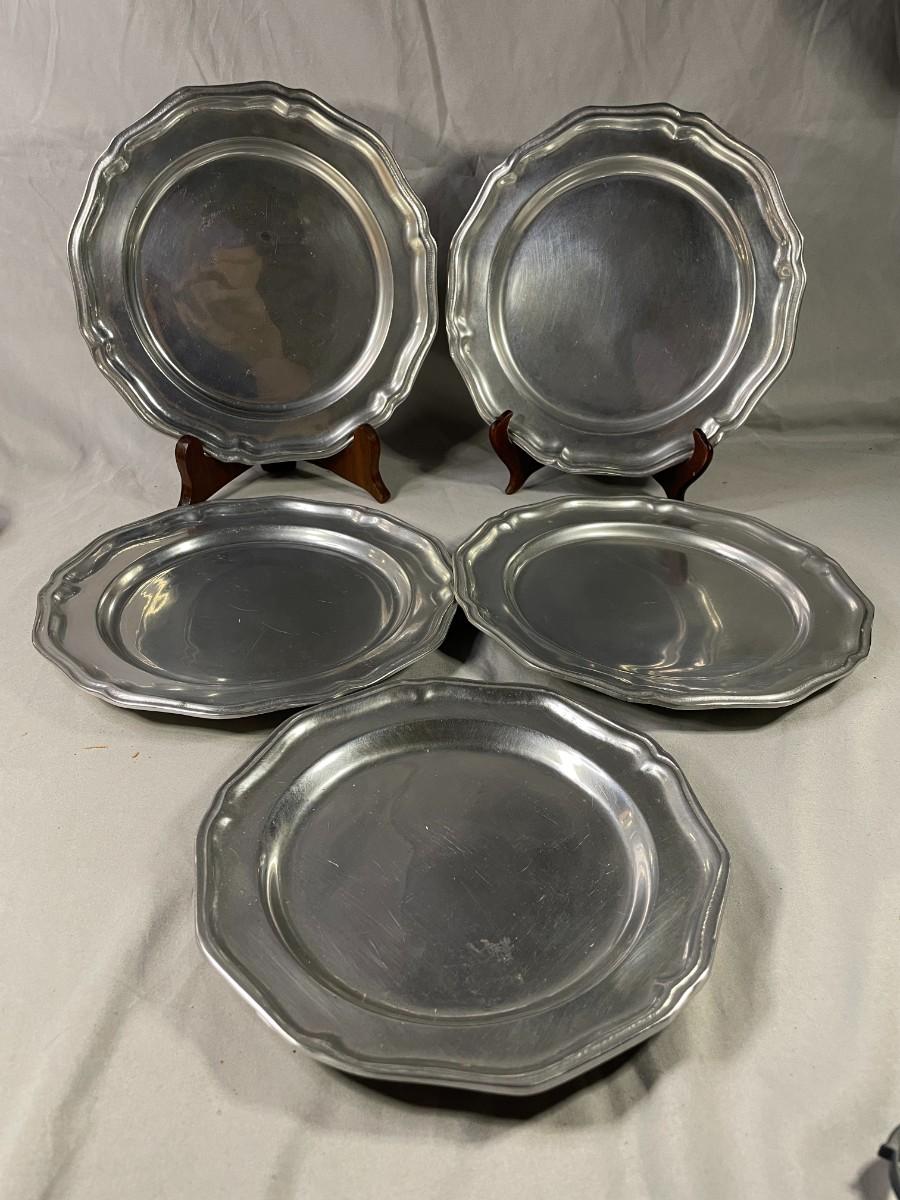 These are all marked Wilton Columbia, PA. (4) are about 10.25" in diameter and one is about 9" in diameter. There are some light scratches, but overall they are in very good condition.