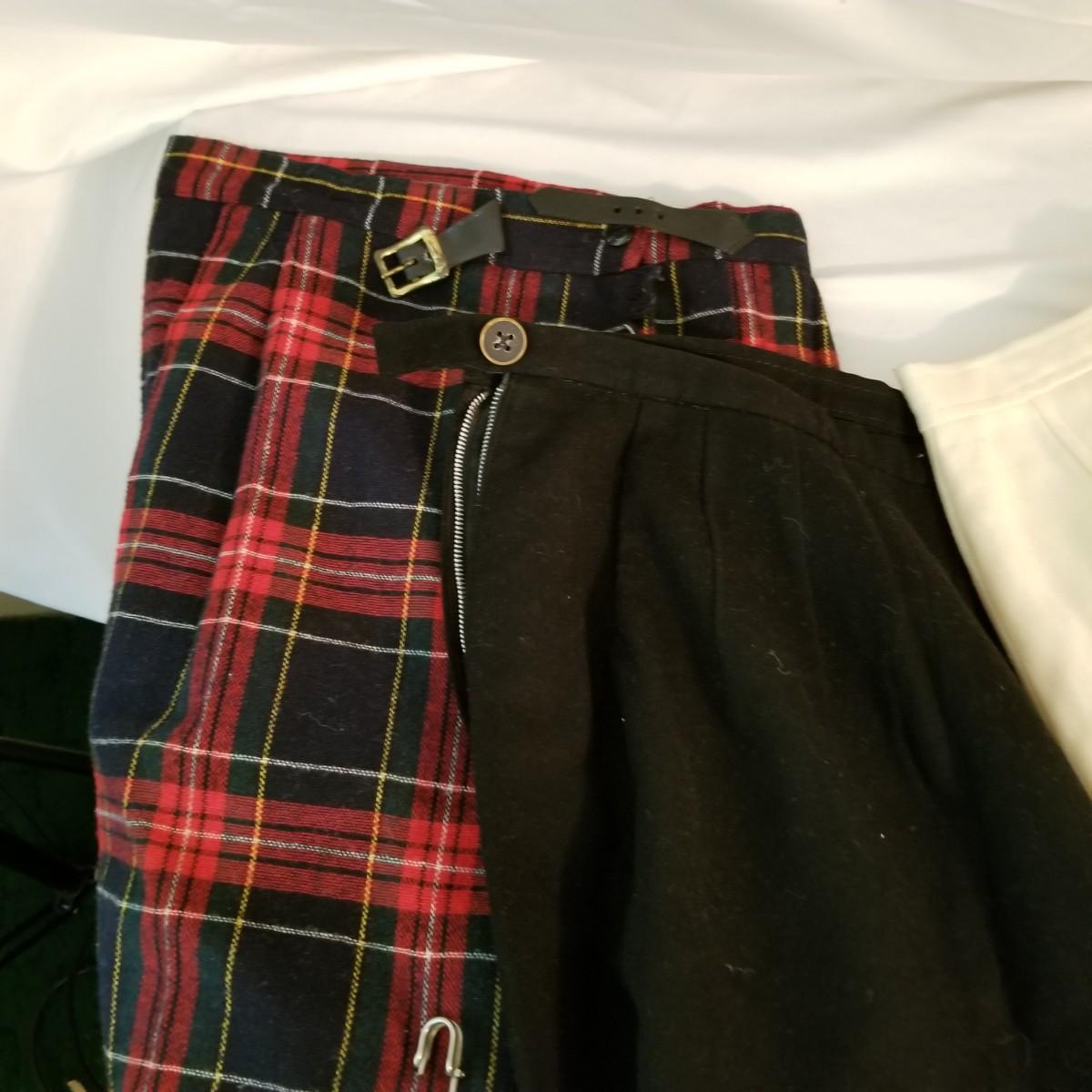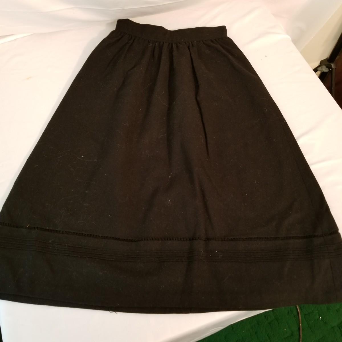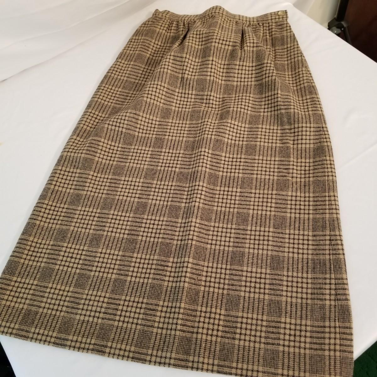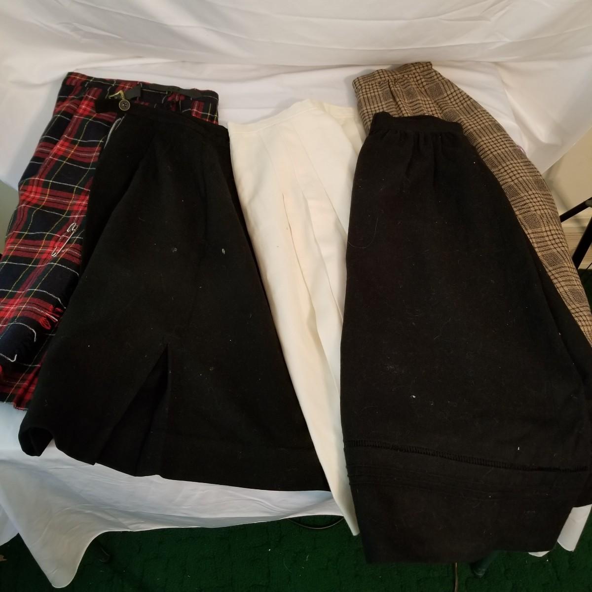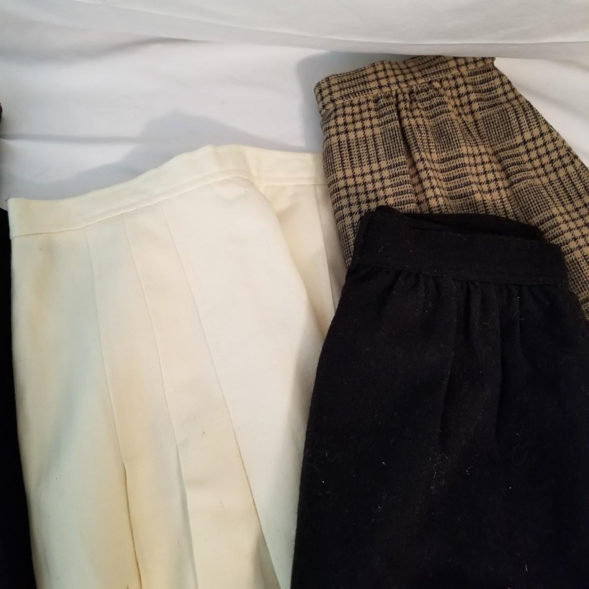 Five wool ladies skirts. Two black, one ivory, one red tweed and one brown tweed. All in good condition, but one black skirt has some spots. See photos. 29" length all pieces. All size 6. Shipping available.