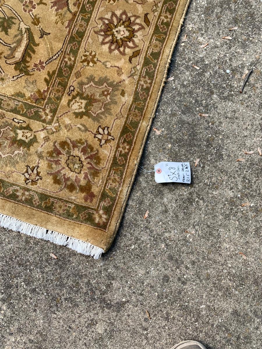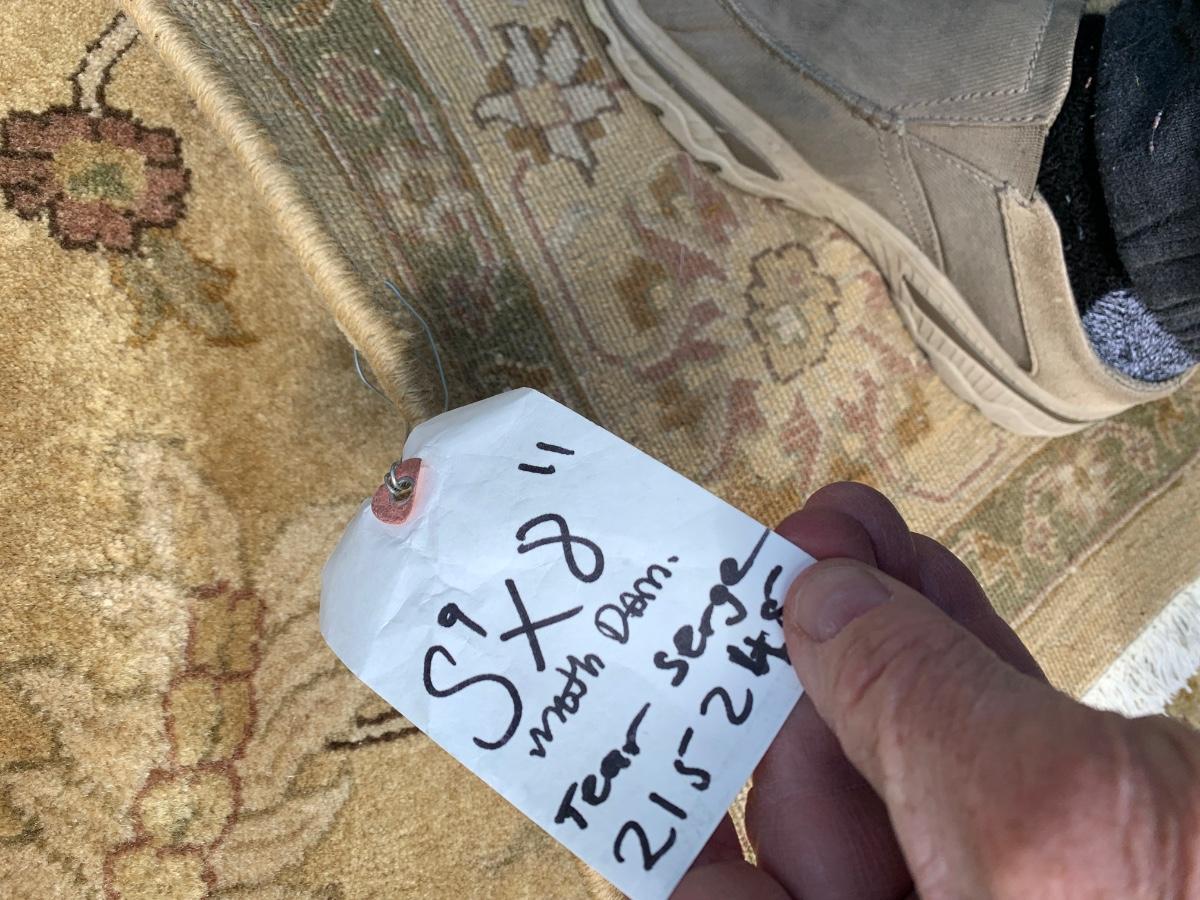 Tag from Haddeed says damaged. Not certain if this is a post repair ticket or not since the rug looks great. Buying as is, as found in the estate. See ALL photos!