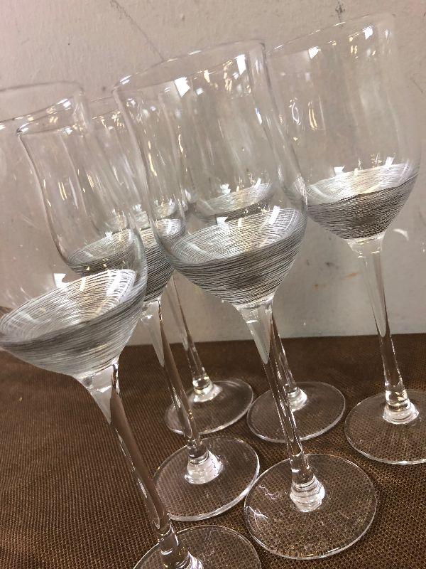 BEAUTIFUL - Really cool silver etched design on the lower portion of the glass. Appear to be in like new condition.